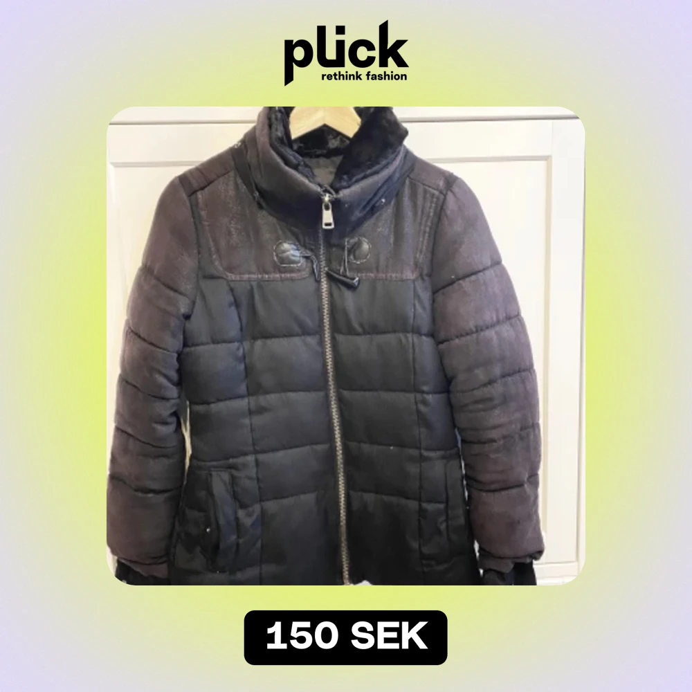 Säljer en snygg svart pufferjacka med fuskpäls på insidan av kragen. Jackan har en dragkedja framtill och är quiltad för extra värme. Perfekt för kalla vinterdagar! Den har långa ärmar och en stilren design som passar till det mesta. Ett måste för garderoben i vinter!