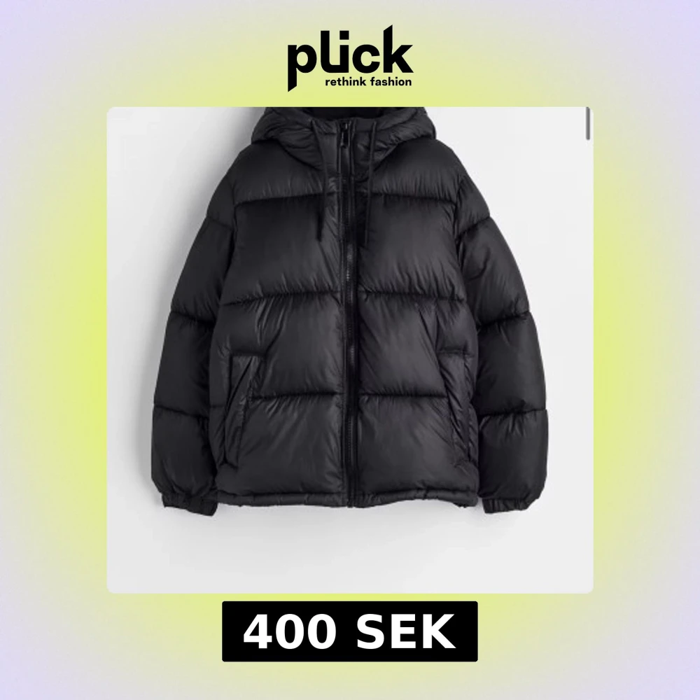 Säljer en svart vinter pufferjacka med huva och dragkedja framtill från Hm i storlek Xs