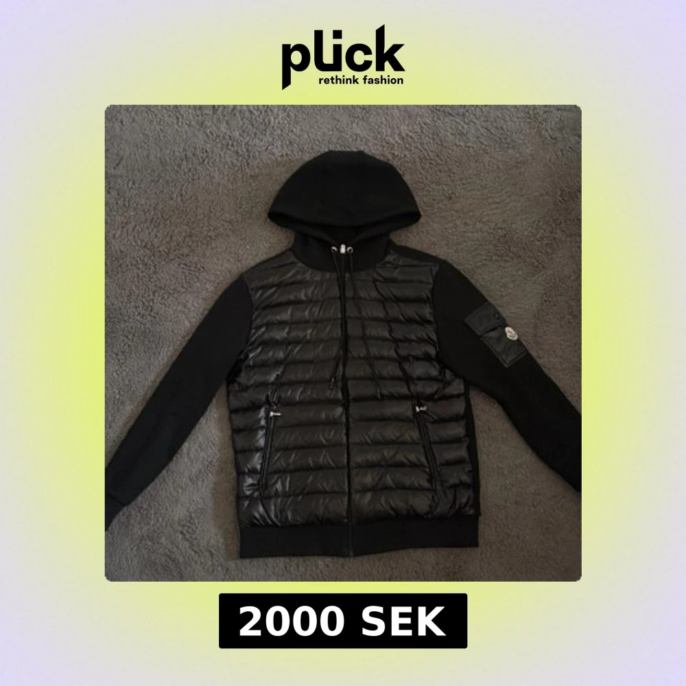 Snygg svart pufferjacka från Moncler med huva och dragkedja. Jackan har quiltad framsida, två fickor med dragkedja och en ärmficka med Moncler-logga. Perfekt för kyliga dagar och stilren look.med nfc tagg