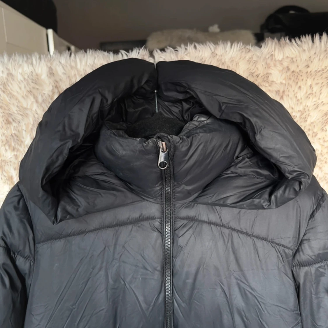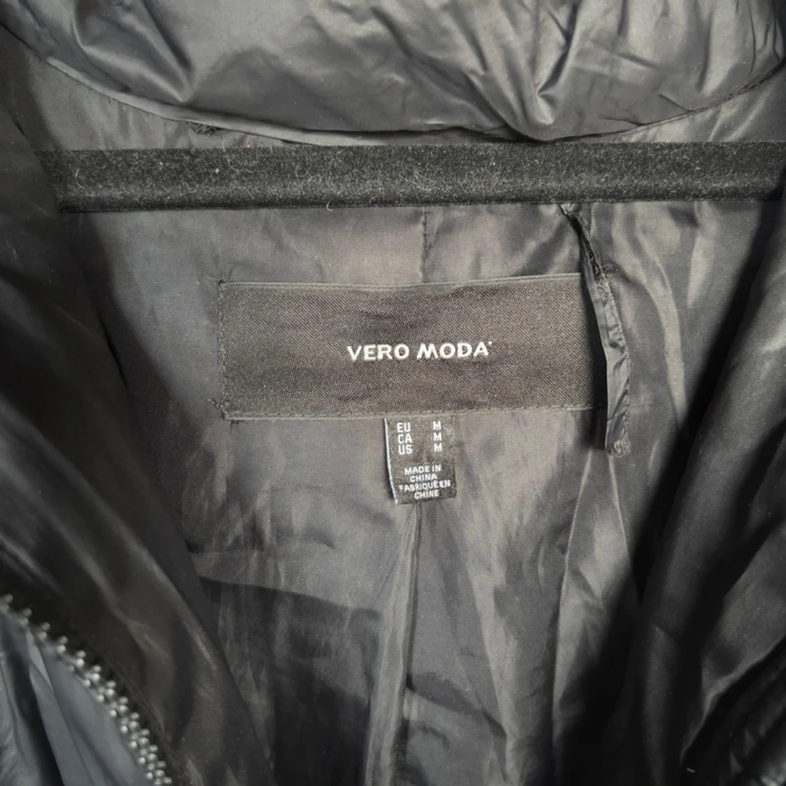 Svart pufferjacka från Vero Moda med stor, mysig huva och dragkedja framtill.