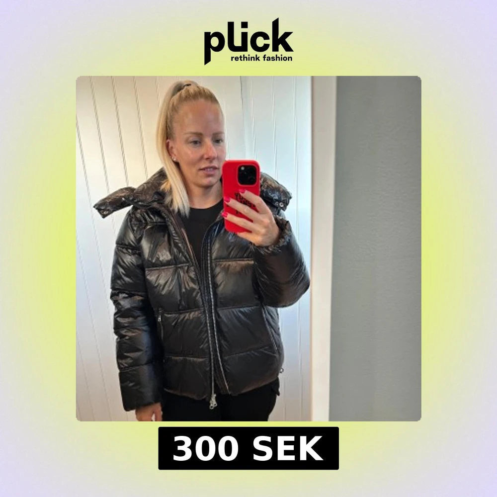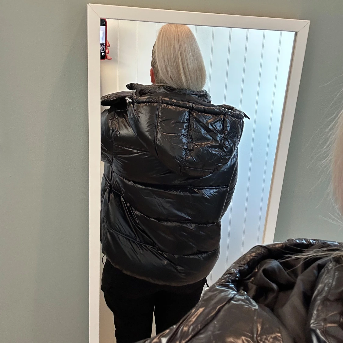 Säljer en svart pufferjacka med glansig finish och stor huva. Jackan har breda, quiltade sektioner och tvåvägsdragkedja framtill. Passformen är loose och jackan är perfekt för kalla dagar. Snygg och trendig look som håller dig varm hela vintern. NY aldrig använd endast privat, tagg kvar!