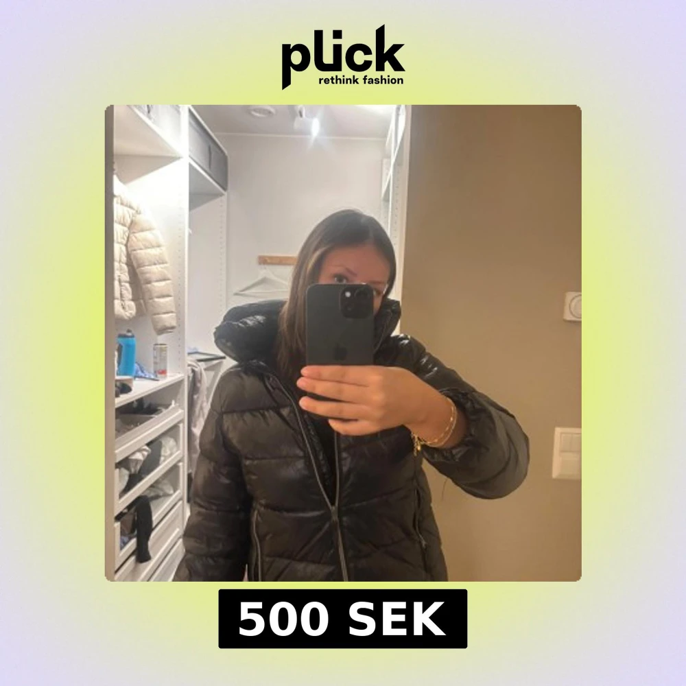 Svart pufferjacka med huva