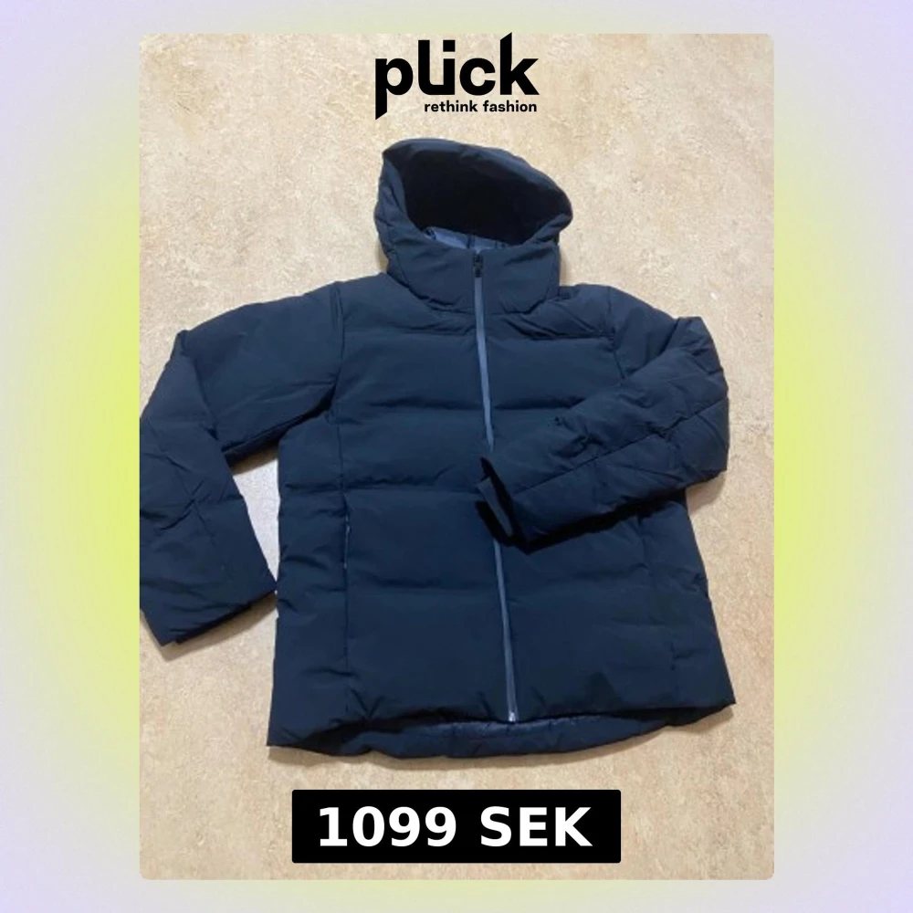 Säljer en svart pufferjacka med hög krage och stor huva. Jackan har en rak passform, långa ärmar och dragkedja framtill. Perfekt för kalla dagar när du vill hålla dig varm och stilsäker.