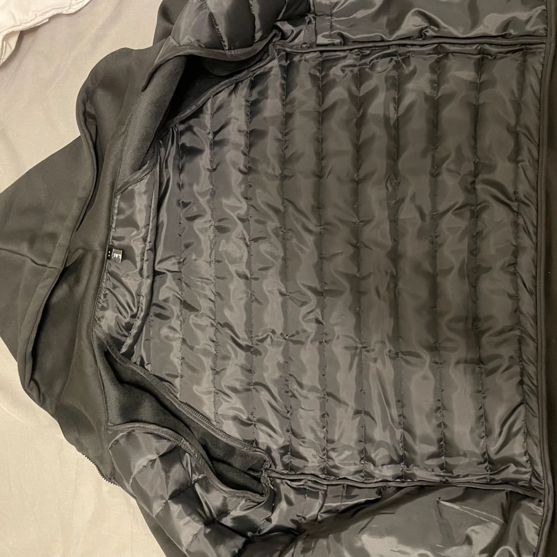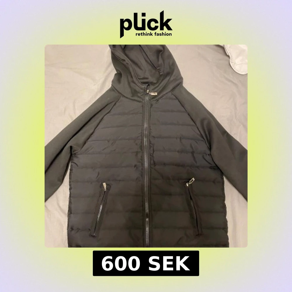 Svart pufferjacka med huva och dragkedja framtill. Jackan har quiltad kropp och släta ärmar, två snedställda fickor med dragkedja och en clean look. Perfekt för dig som gillar stilren och enkel design.