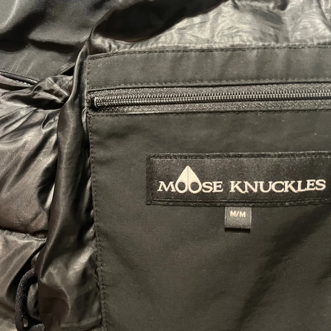 Säljer en svart pufferjacka från Moose Knuckles med stor fluffig vit fuskpäls på huvan. Jackan har dragkedja, tryckknappar och flera fickor. Perfekt för kalla dagar och riktigt snygg siluett. Klassisk logga på insidan och detaljer i silver.