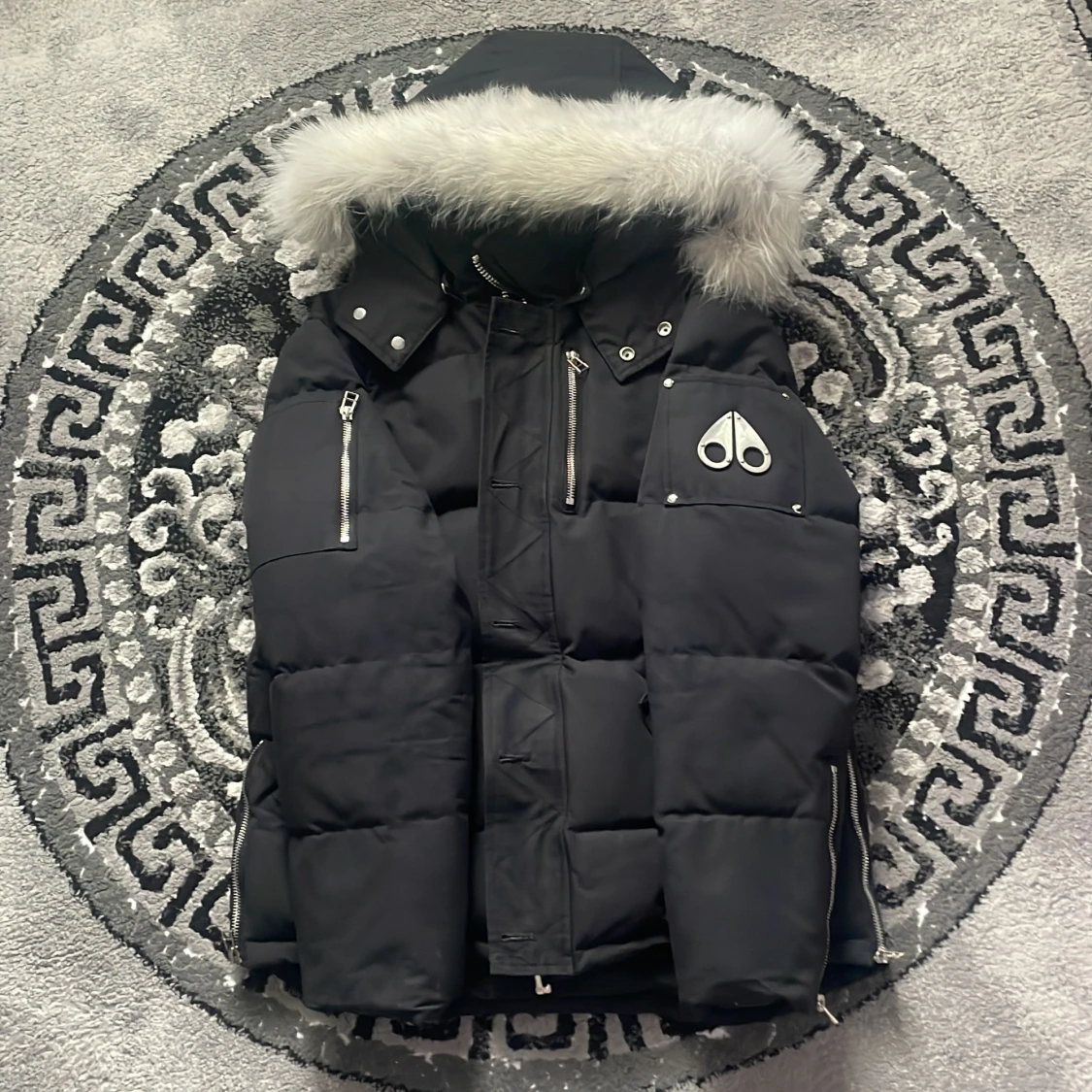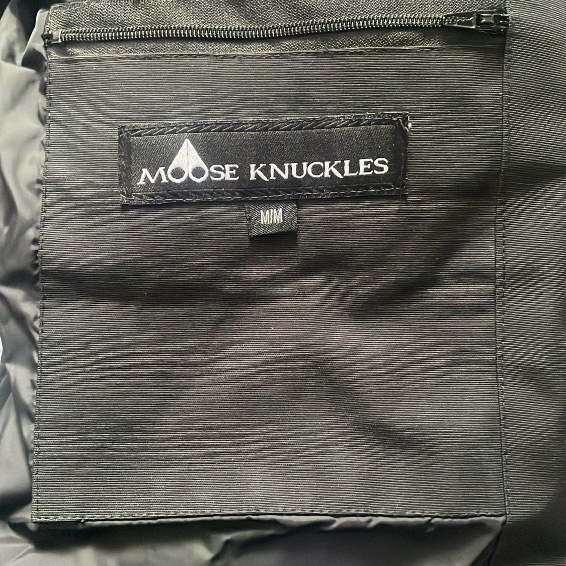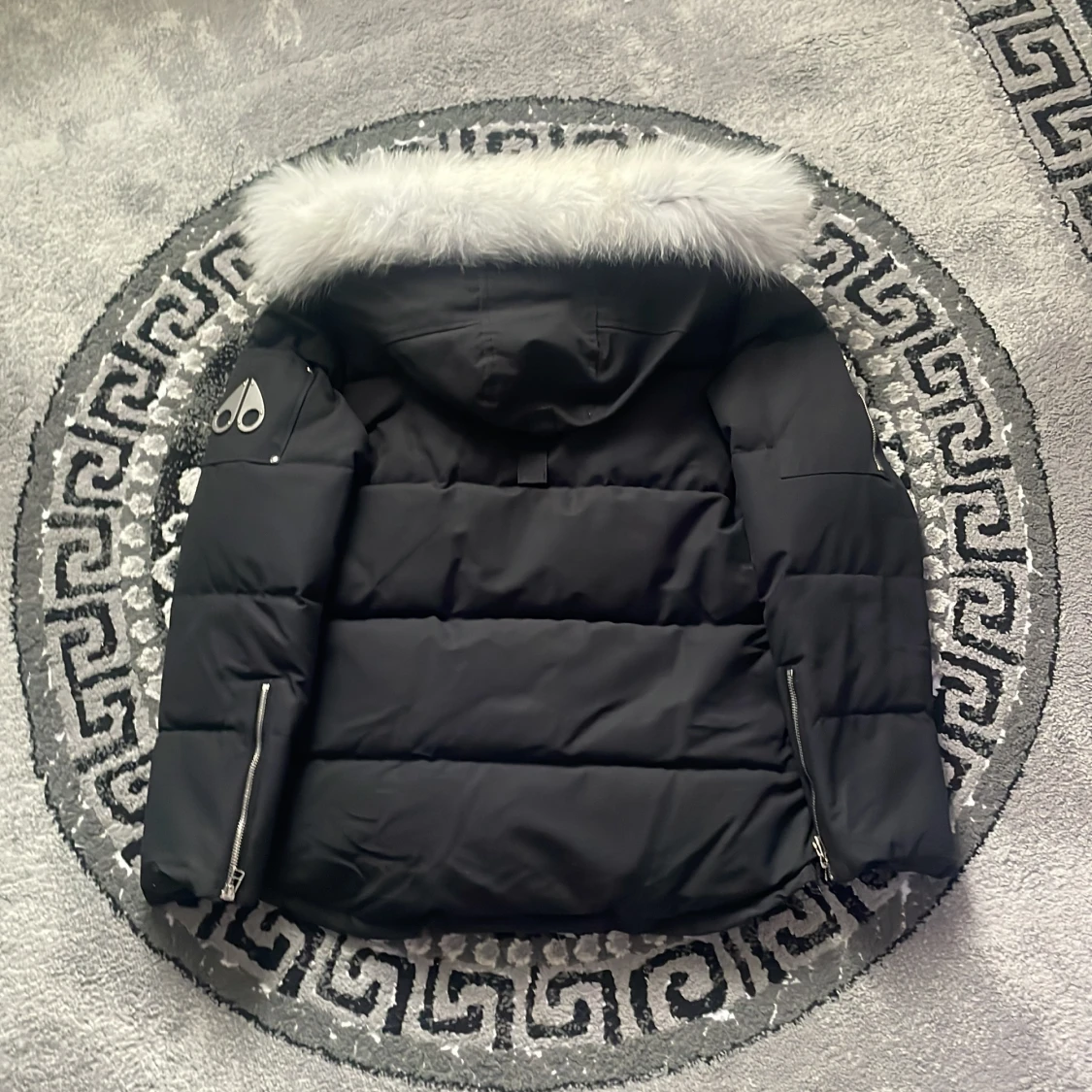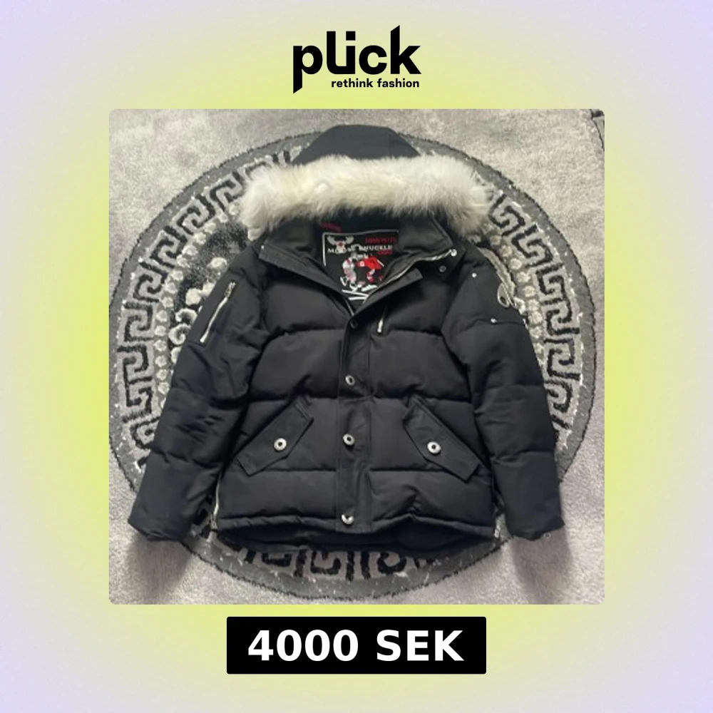 Säljer en svart pufferjacka från Moose Knuckles i storlek M. Jackan har en fet pälskantad huva, silvriga dragkedjor och knappar, samt logga på ärmen. Perfekt för kalla dagar med sin tjocka dunfyllning och snygga detaljer.