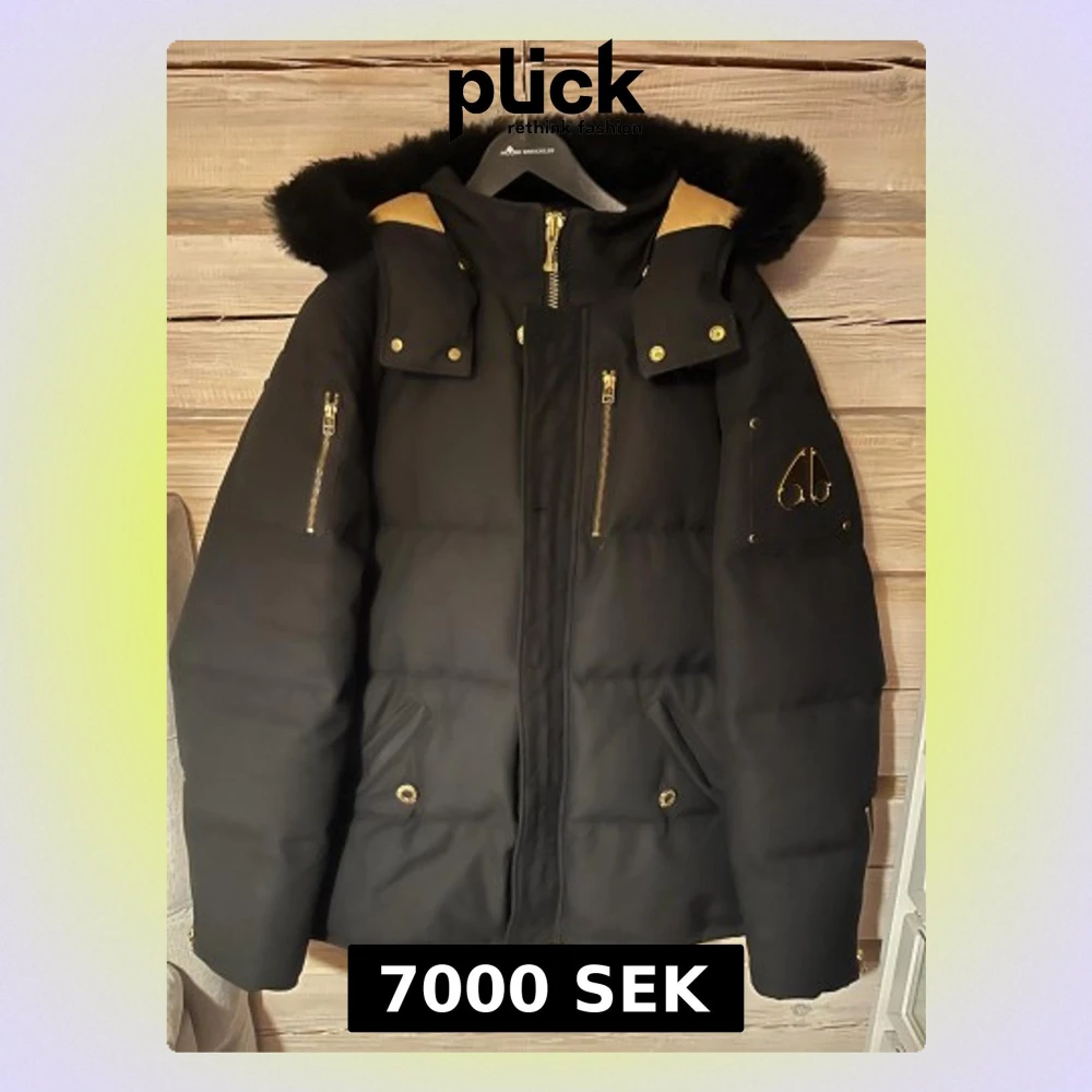Svart pufferjacka från Moose Knuckles med guldfärgade detaljer och dragkedjor. Jackan har en stor huva med svart fuskpäls, quiltad design och lyxigt guldigt innerfoder med mönster. Snygg logga på ärmen och flera praktiska fickor. Nypris 13 999kr med kvitto.