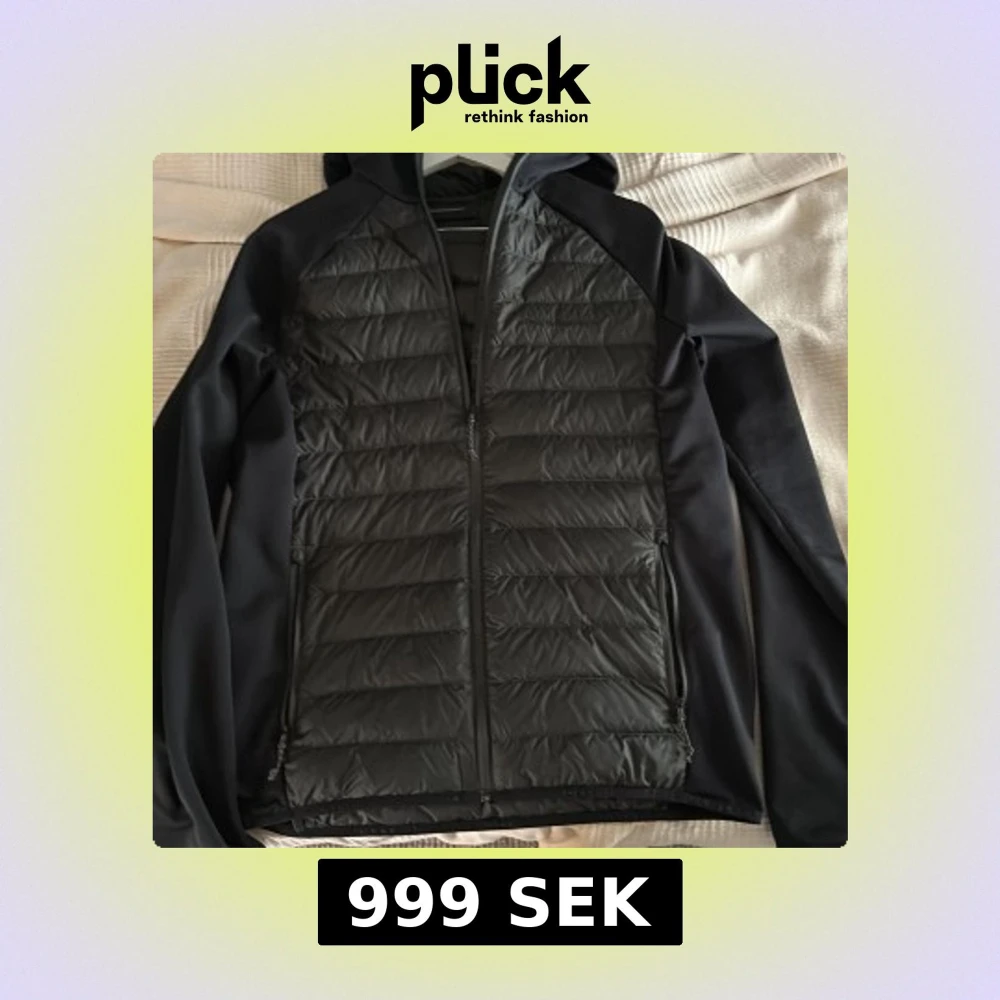 Svart pufferjacka från Peak Performance i storlek L. Jackan har huva, dragkedja framtill och quiltad framsida och rygg. Ärmarna är släta och materialet är en mix av polyester och syntet. Perfekt för kyliga dagar och snygg till streetwear.