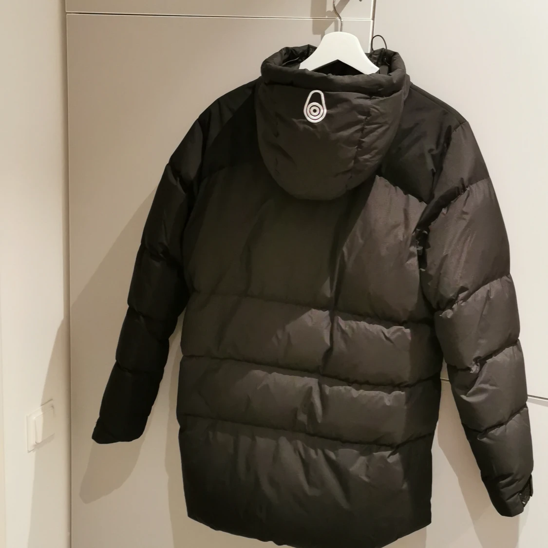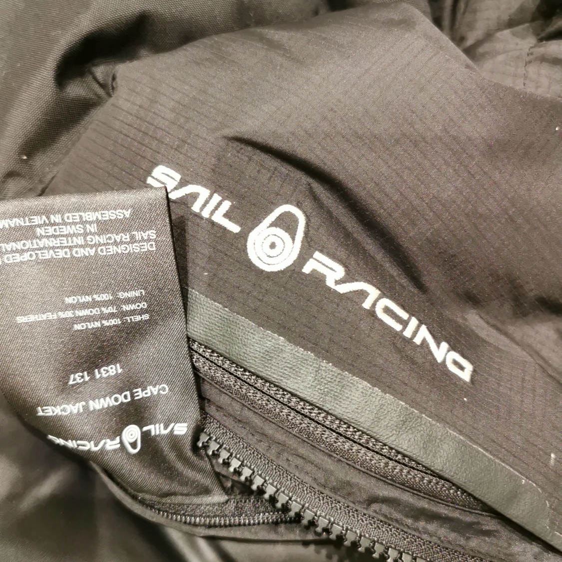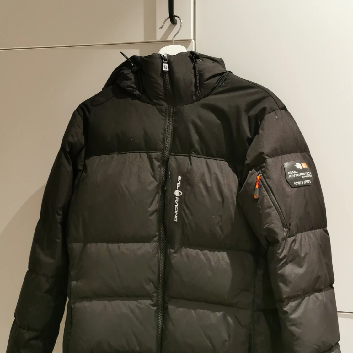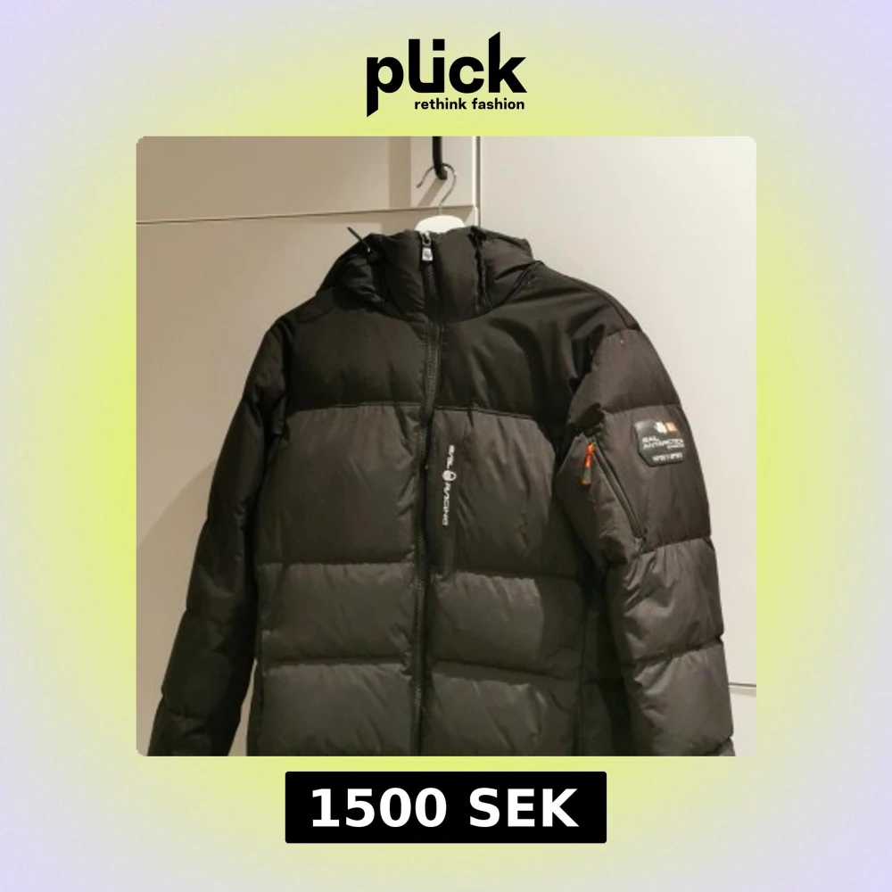 Svart pufferjacka från Sail Racing med luva och dragkedja. Jackan har patch på ärmen med 'Sail Antarctica Expedition' och logga på bröstet. Fylld för extra värme och perfekt för kalla dagar. Snygg, sportig look och praktiska fickor. Den är köpt ungefär för ett år sen. I storlek S.