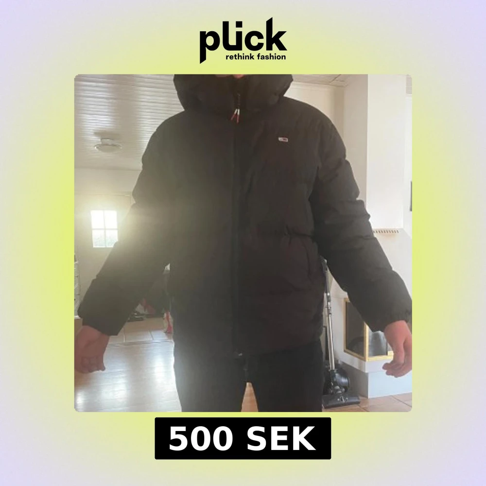 Säljer en svart pufferjacka från Tommy Hilfiger Jackan har en hög krage och huva för extra värme. Perfekt för kalla dagar med sin vadderade design och dragkedja framtill.