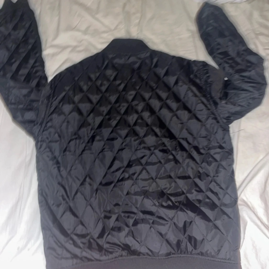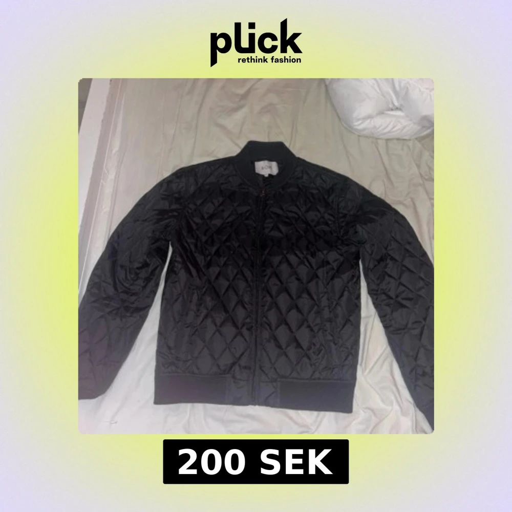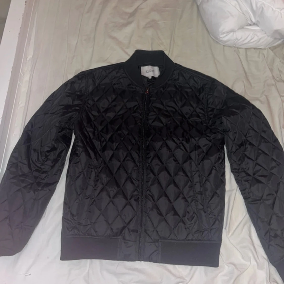 Säljer en svart quiltad bomberjacka från KIOMI i storlek M. Jackan har ribbade muddar, dragkedja framtill och ett snyggt rutmönster över hela ytan. Perfekt för dig som vill ha en stilren och trendig jacka med lite extra edge.