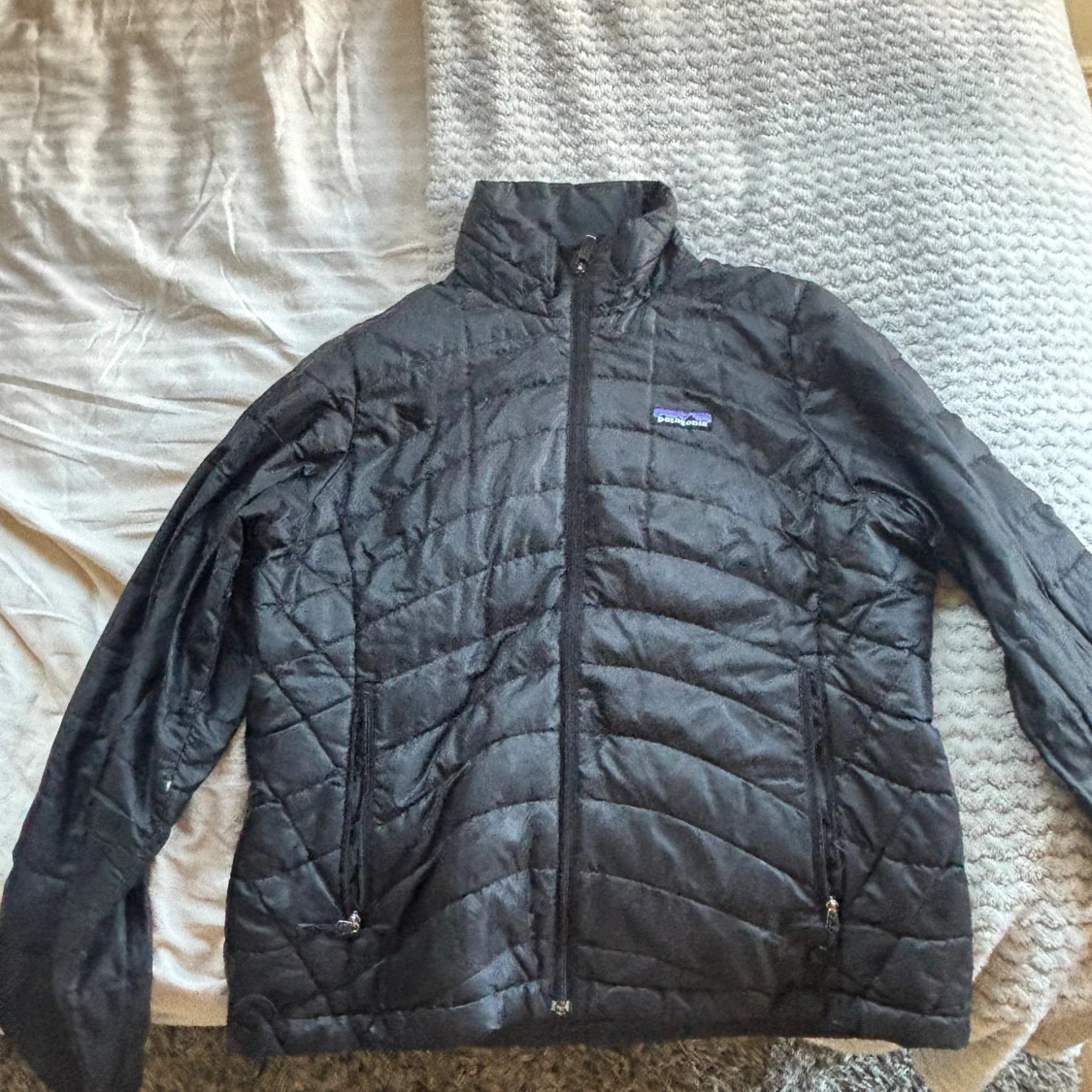 Svart dunjacka från Patagonia med quiltad design och hög krage. Jackan har dragkedja framtill och två sidofickor med dragkedja. Perfekt för kyliga dagar och enkel att matcha med allt. Klassisk logga på bröstet.
