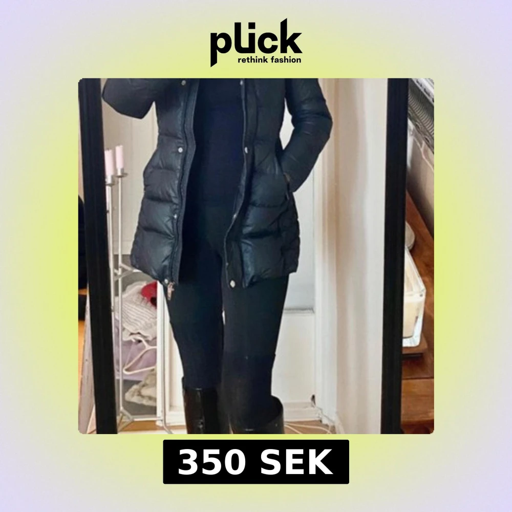 Snygg svart dunjacka från Woolrich med quiltad design och pälskantad huva. Jackan har dragkedja och knappar framtill samt en badge på ärmen. Perfekt för kyliga dagar!