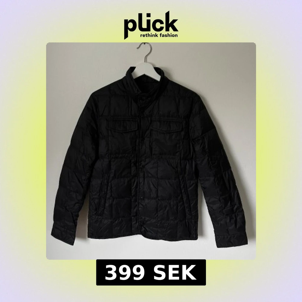 Svart dunjacka från Massimo Dutti med quiltad design och hög krage. Jackan har två bröstfickor med lock, sidofickor och knäppning med knappar. Materialet är polyester med dunfyllning, perfekt för kyliga dagar. Snygg och stilren look som funkar till många outfits. 90% ank dun och 10% fjäder dun. 5H5