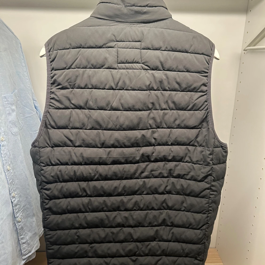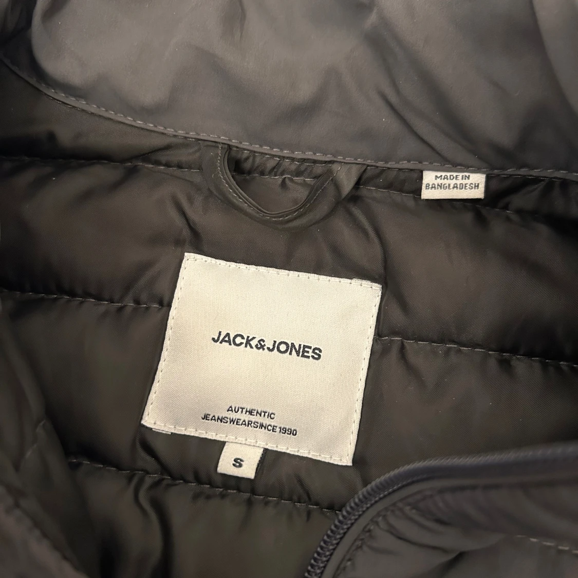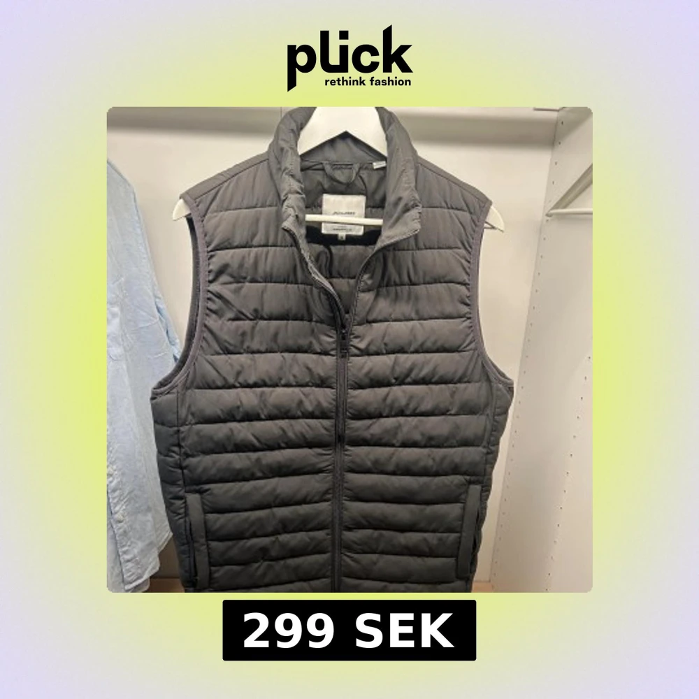 Svart dunväst från Jack & Jones i storlek S. Västen har ett quiltat, horisontellt mönster och dragkedja framtill. Hög krage och två sidofickor. Perfekt att slänga över en hoodie för extra värme. Materialet är polyester och dun.