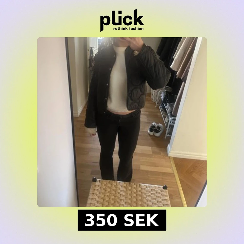 Säljer en svart quiltad jacka med knappar från mango som är super populär . Jackan har en normal passform och är perfekt för höst och vår.