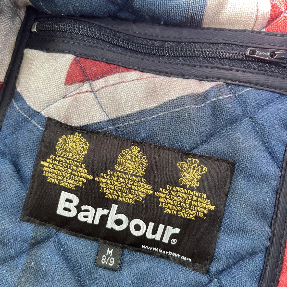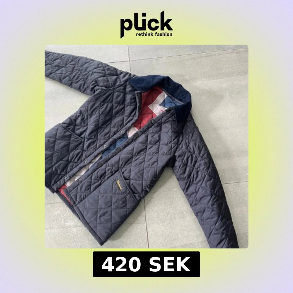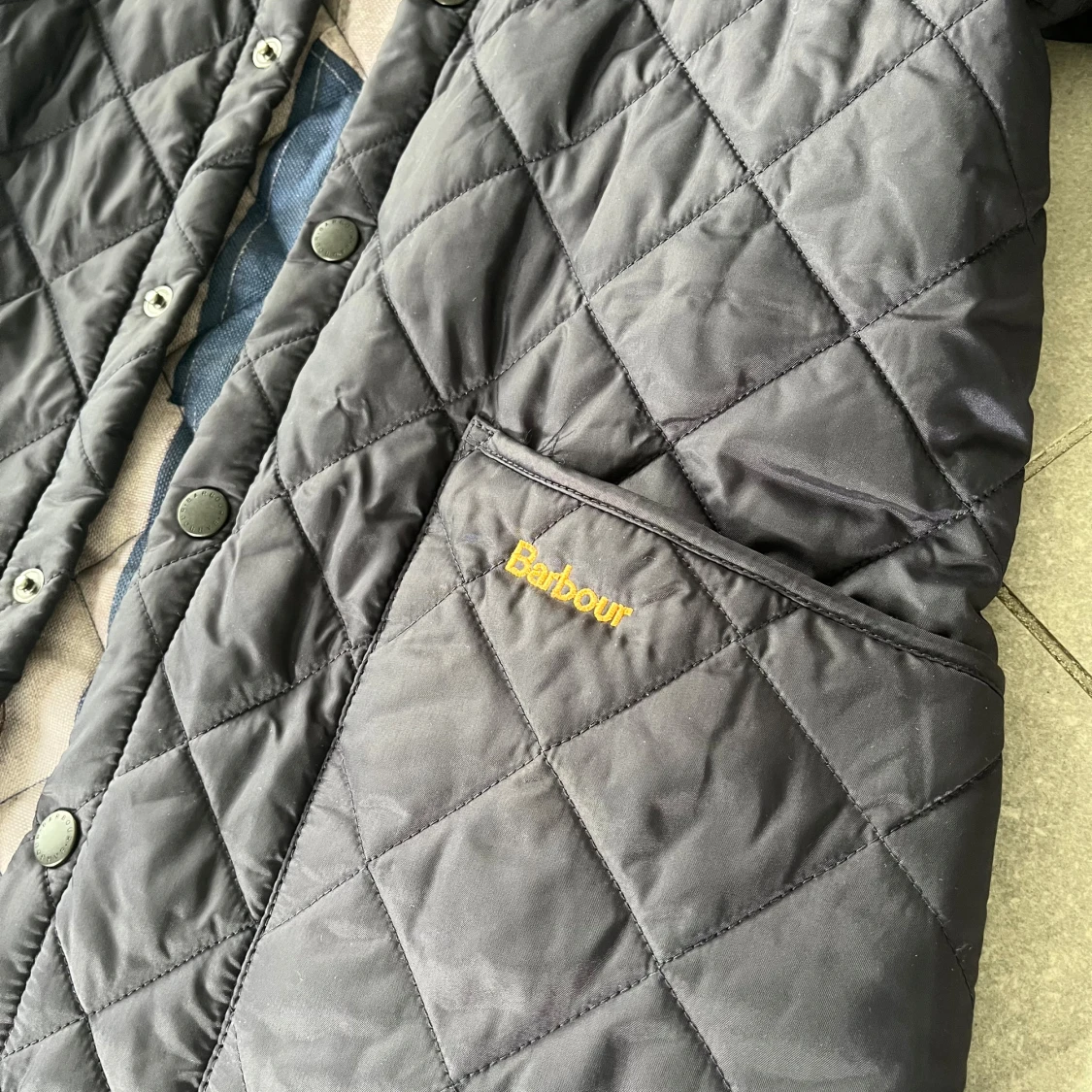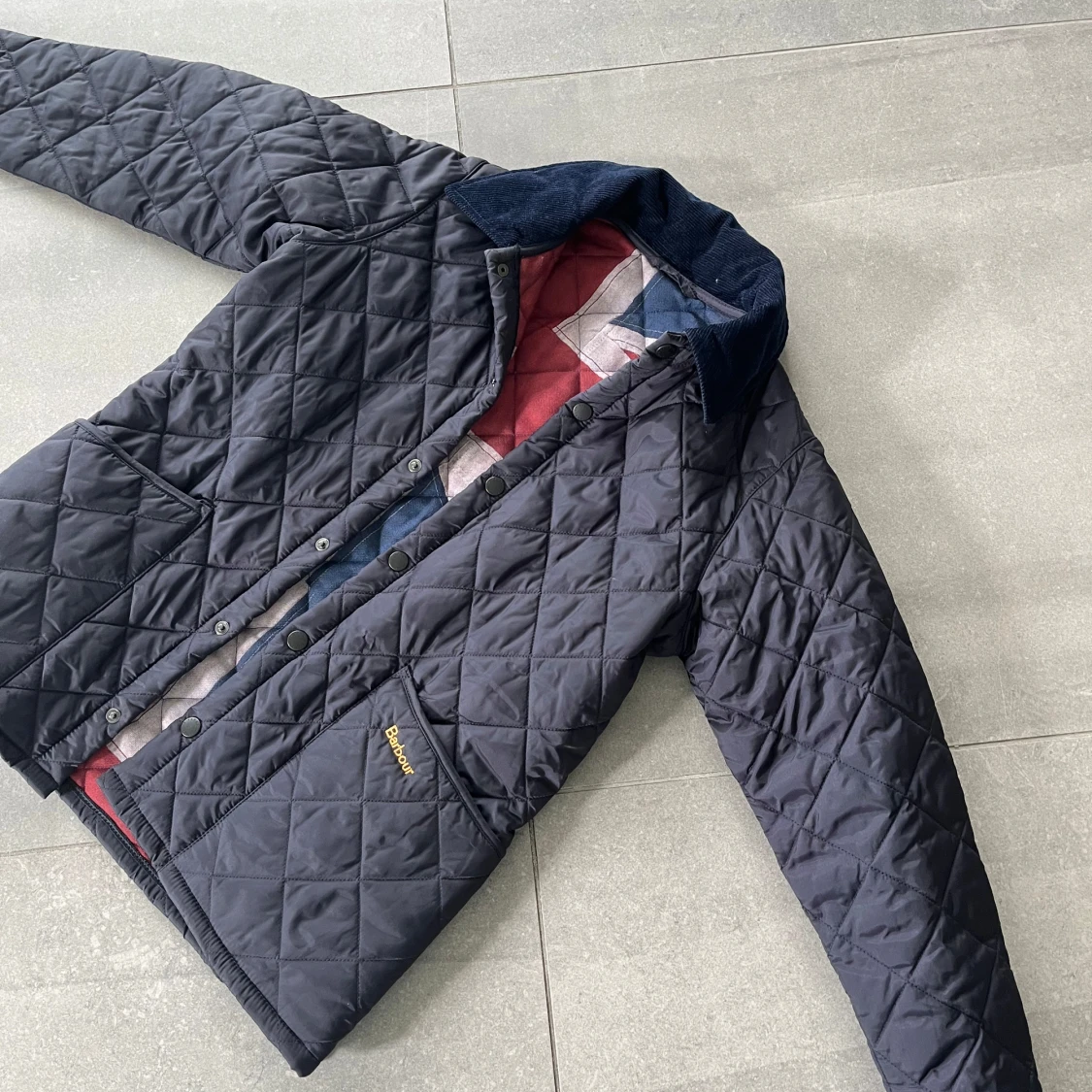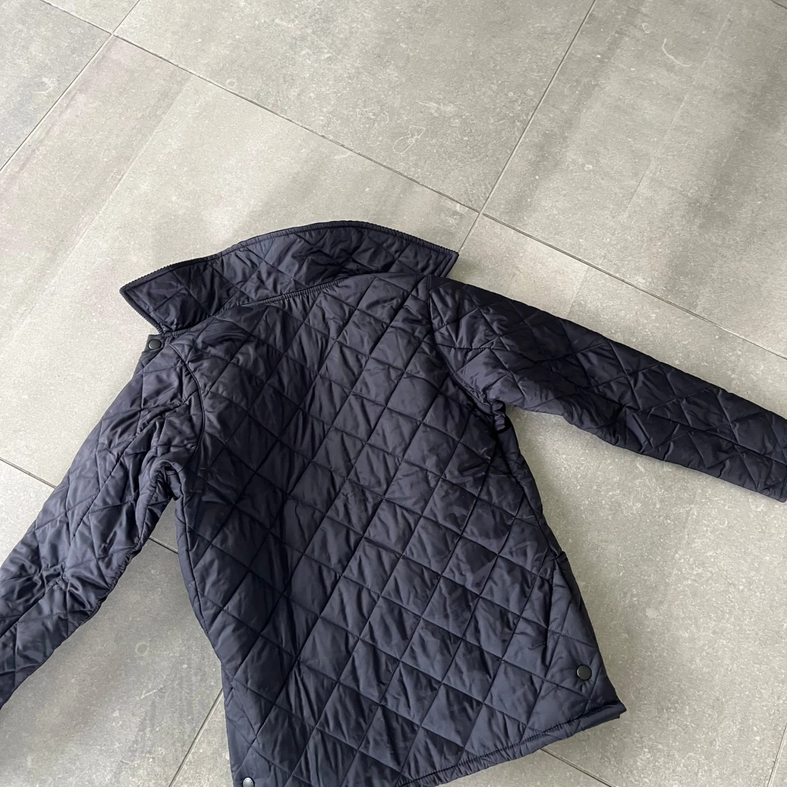 Quiltad svart jacka från Barbour med klassisk krage i manchester, tryckknappar och två stora fickor framtill. Jackan har Barbour-logga broderad på fickan och ett snyggt rutigt innerfoder. Perfekt för dig som gillar stilren och tidlös look.