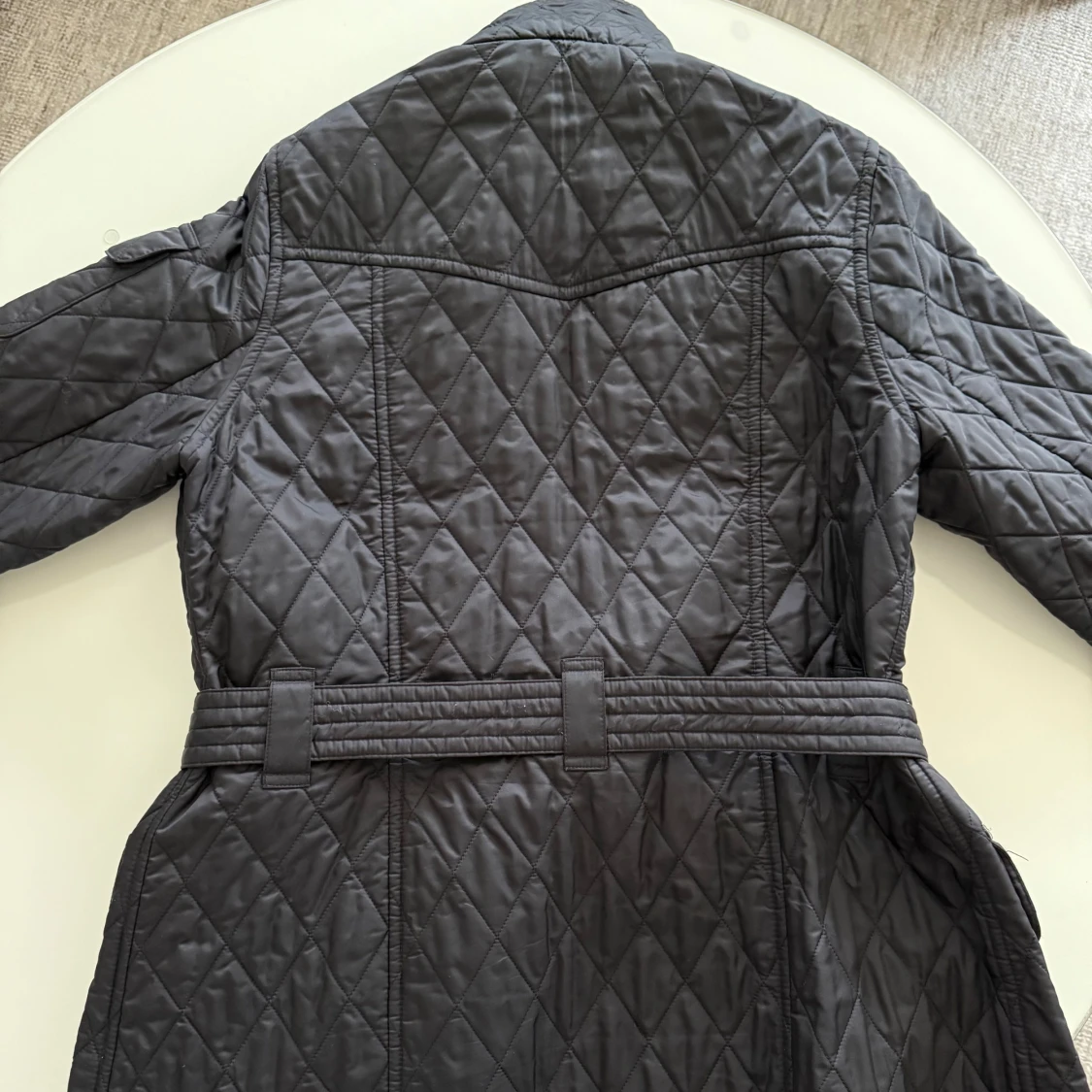Svart quiltad jacka från Barbour med bälte