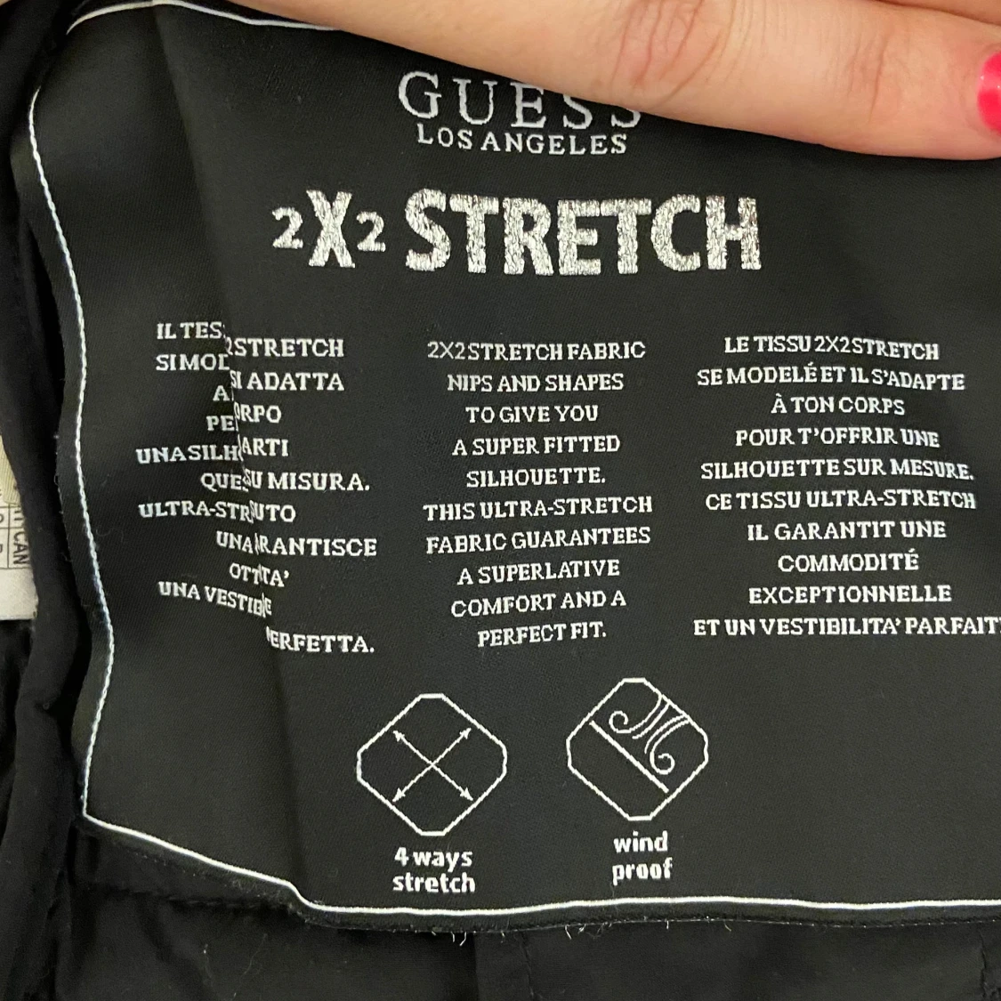 Säljer en snygg svart quiltad jacka från Guess i mycket bra skick. Den har en dragkedja framtill och två praktiska fickor med dragkedjor. Perfekt för höst och vår, med en stilren design som passar till det mesta. Jackan är långärmad och har en normal passform.