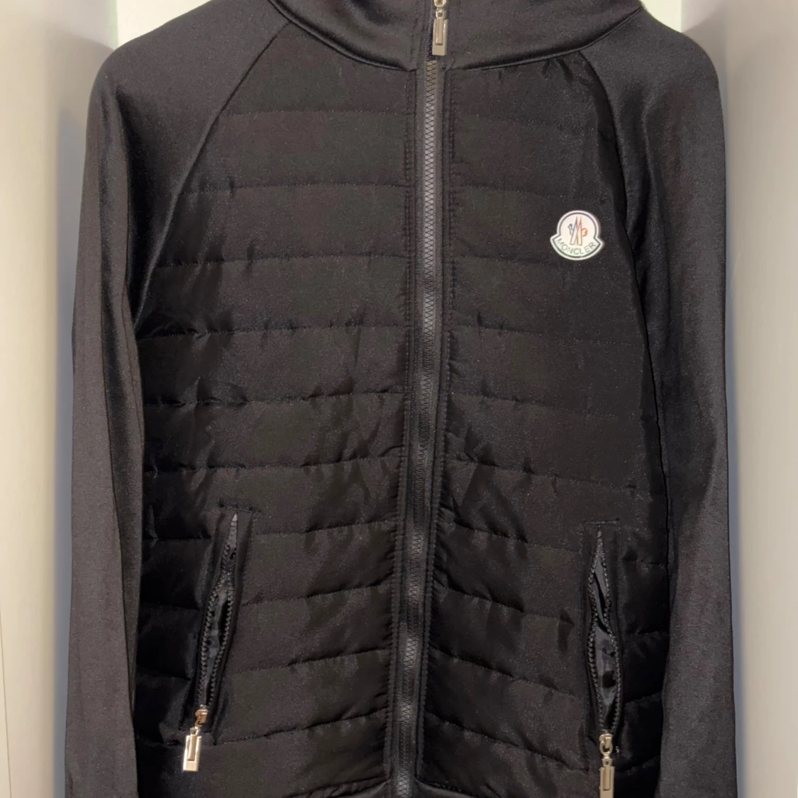 Svart quiltad jacka från Moncler med dragkedja framtill och två fickor med dragkedja. Jackan har en stilren look med Moncler-logga på bröstet och är tillverkad i syntetmaterial. Perfekt för dig som gillar en clean och sportig stil.