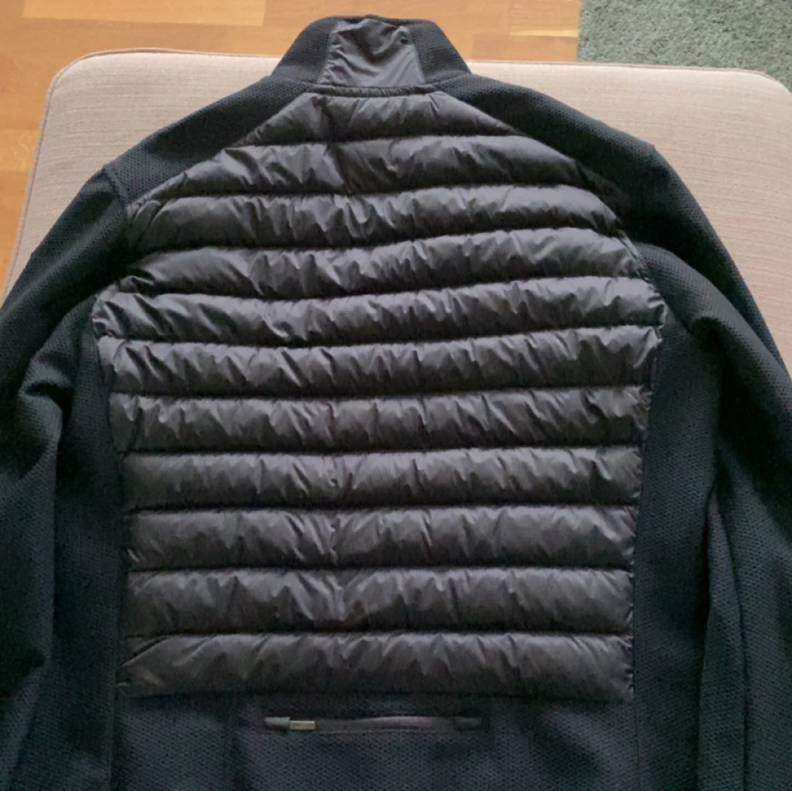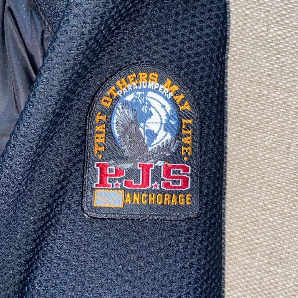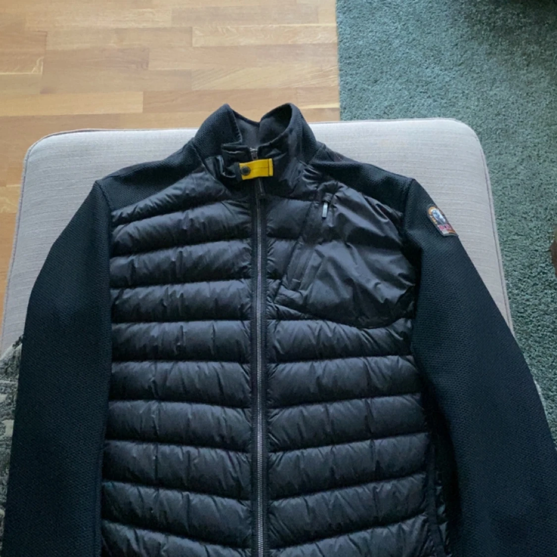 Säljer en svart quiltad jacka från Parajumpers med dragkedja och en cool patch på ärmen. Jackan har en stilren design med långärmade ärmar och är perfekt för kyligare dagar. Den är i storlek XL och har en snygg, sportig look.