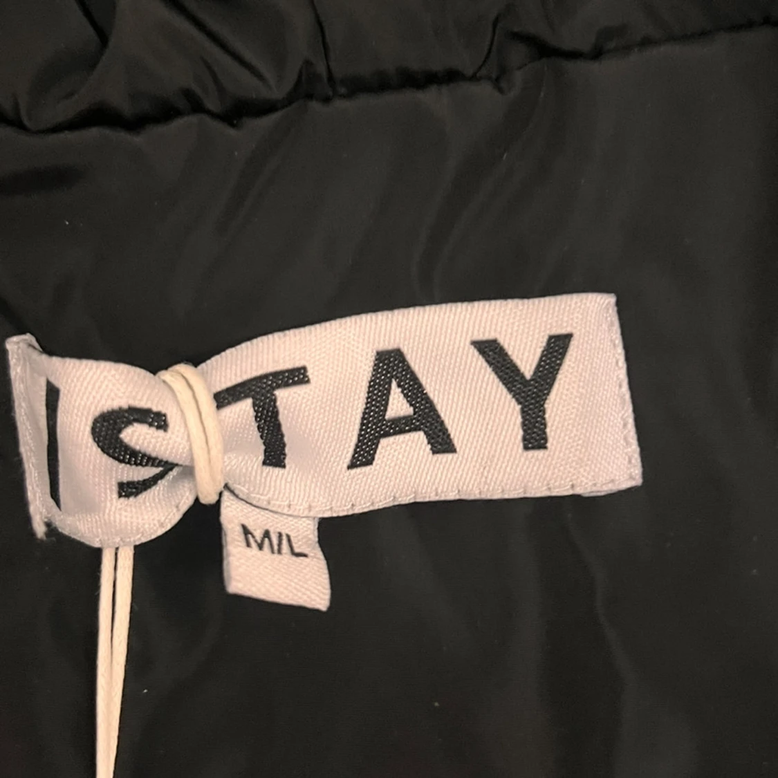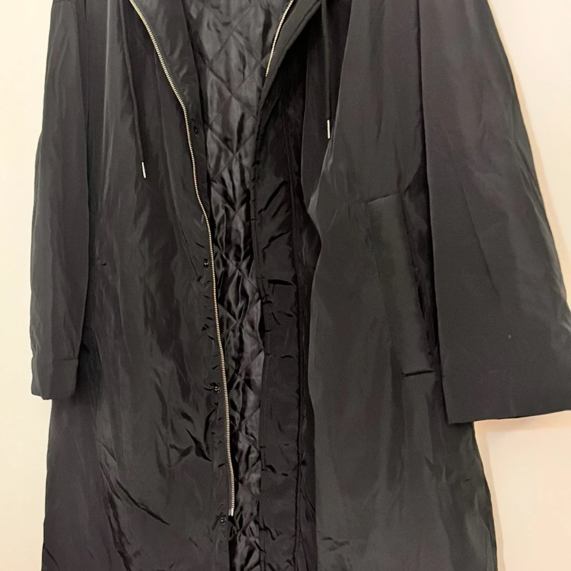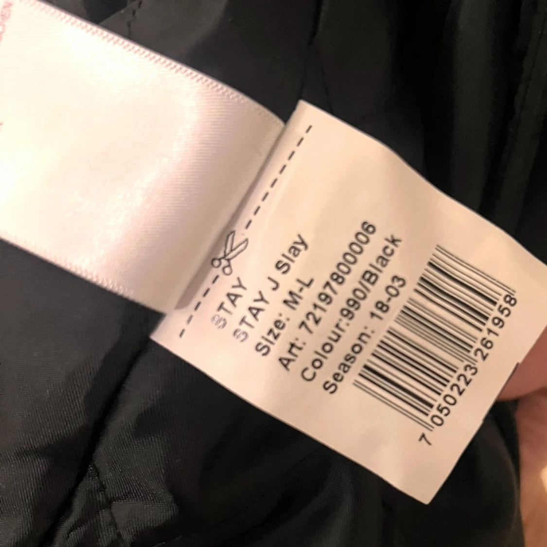 Svart parkajacka från Stay i storlek M/L. Jackan har quiltat foder, huva med snörning och dragkedja framtill. Den är lång och har en loose passform, perfekt för dig som gillar oversized stil. Materialet är syntet och jackan har praktiska fickor.