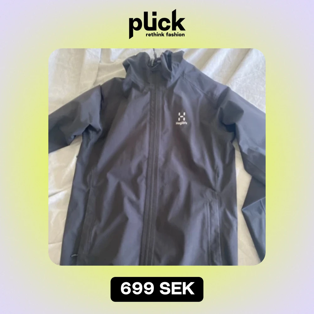 Säljer en svart regnjacka från Haglöfs i storlek S. Jackan har en praktisk huva och dragkedja framtill. Perfekt för regniga dagar och håller dig torr och bekväm. Den är i bra skick och redo för nya äventyr! vårt pris är 699 från originalet 2000.