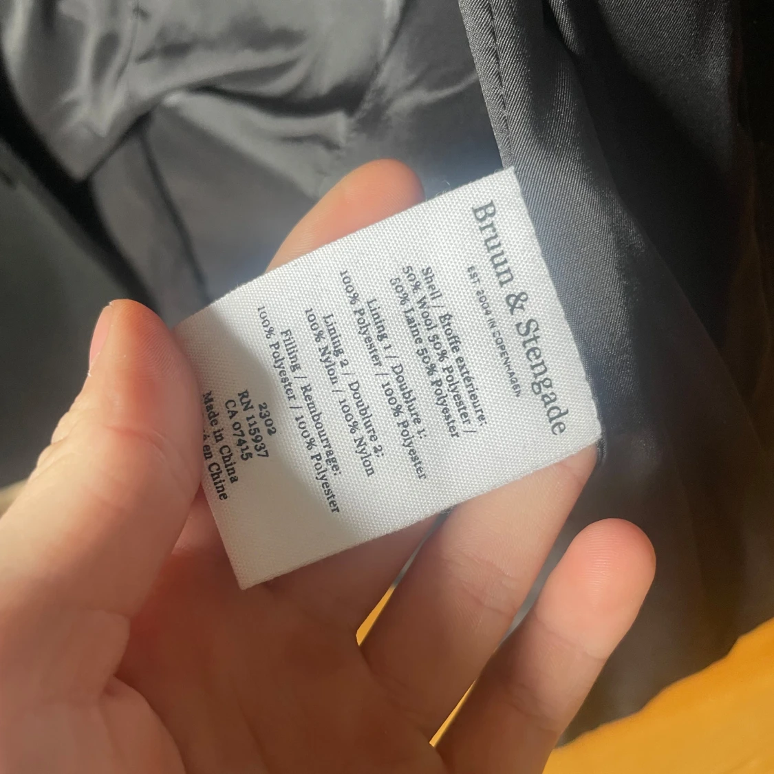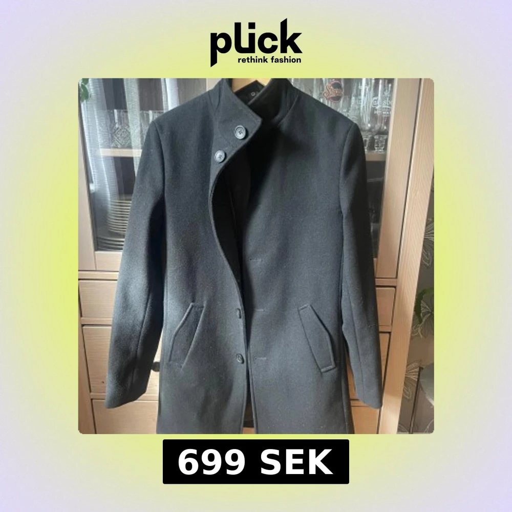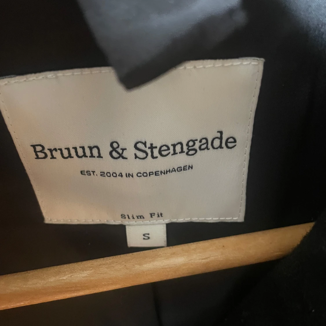 Svart rock från Bruun & Stengade i slim fit. Rocken har en hög krage med två knappar, snedställda fickor och stängs med knappar framtill. Tillverkad i en blandning av ull och polyester vilket gör den både stilren, varm och hållbar. Rocken är knappt använd och i mycket fint skick. En avtagbar innerväst ingår (ej med på bild). Nypris ca 3000 SEK.