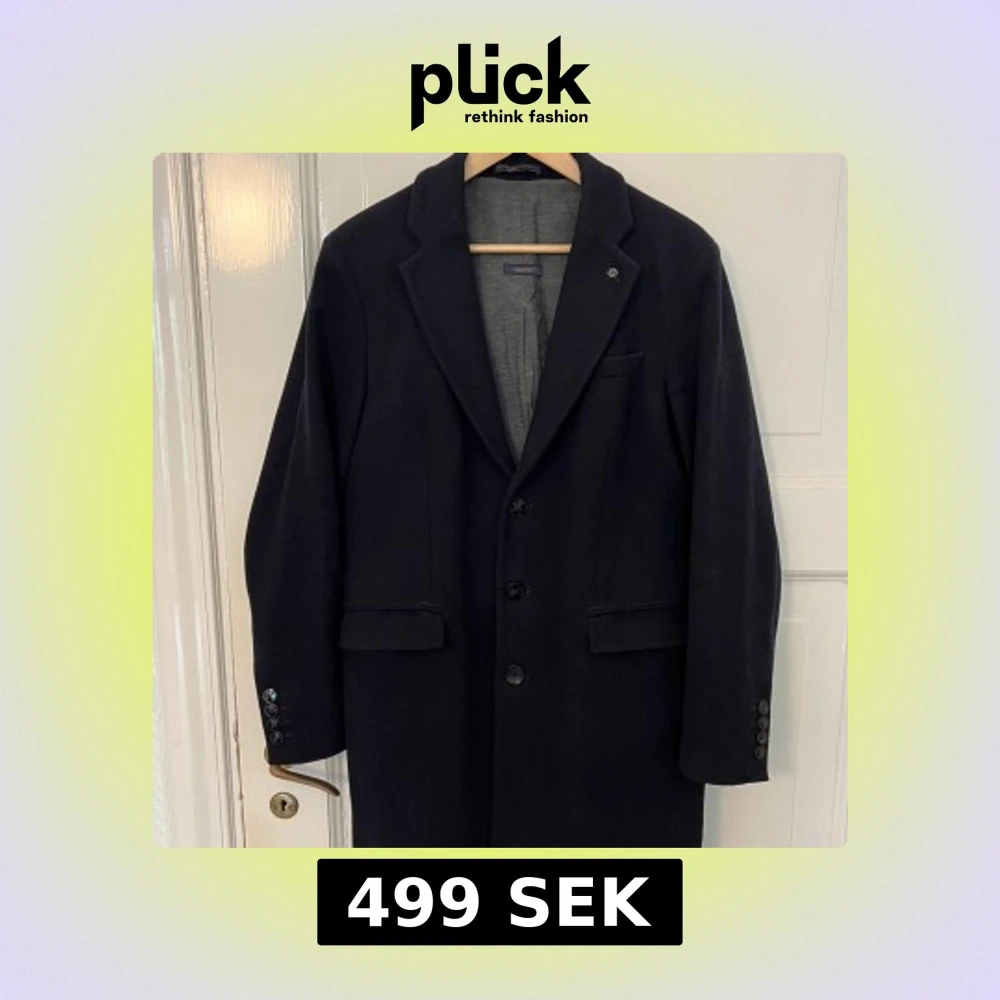 Stilren svart rock med klassisk krage och tre knappar framtill. Jackan har två fickor med lock och en bröstficka. Perfekt för kyligare dagar och ger en tidlös look.