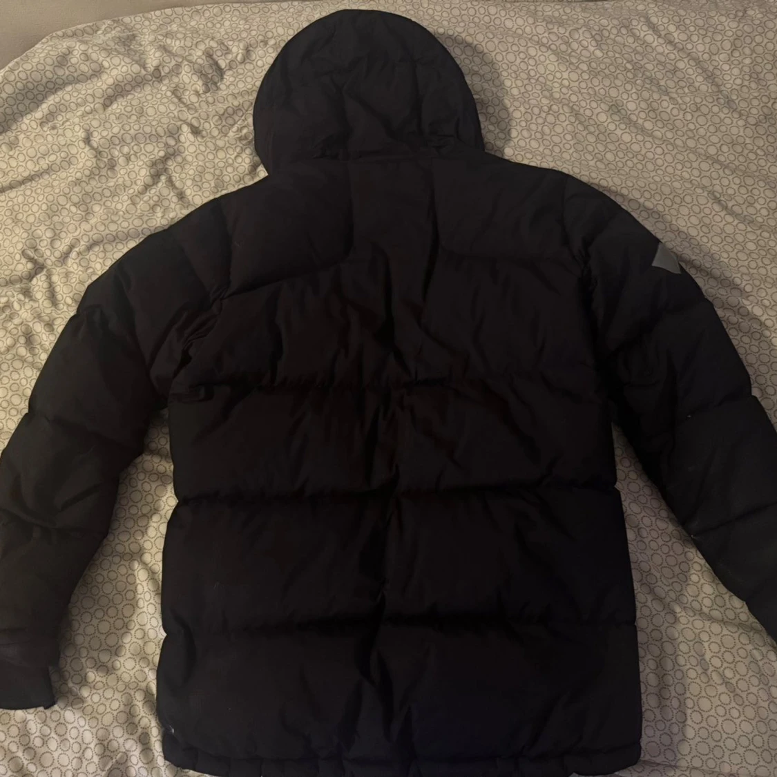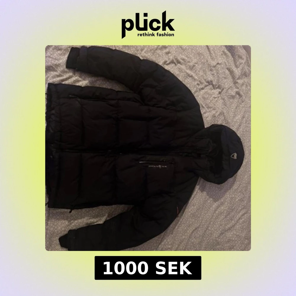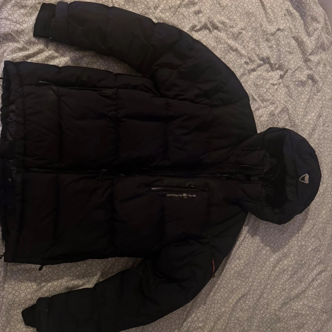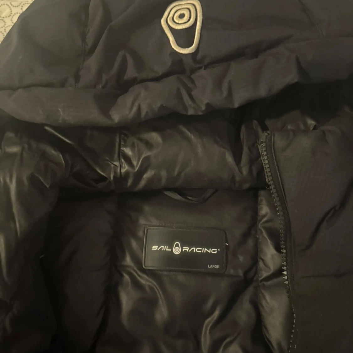 Svart pufferjacka från Sail Racing med huva och dragkedja. Perfekt för kalla dagar och riktigt snygg streetstil. Lite skavanker, syns på bild men inget som förstör jackans funktion. Storlek L men passar även M