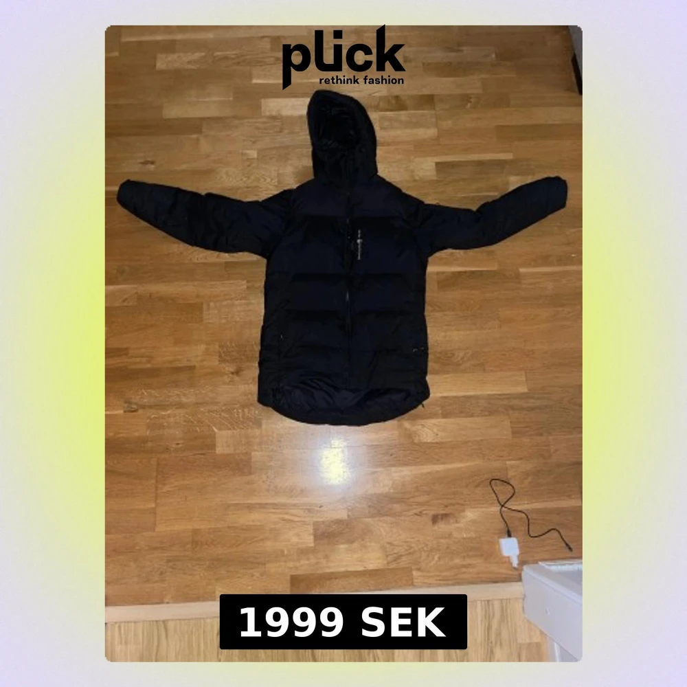 Svart dunjacka från Sail Racing med huva och dragkedja framtill. Jackan har en clean look med diskret logga på bröstet och ärmen. Fylld med dun för extra värme och har långa ärmar. Perfekt för kalla dagar och har en snygg, sportig vibe. Den passar till alla stilar när man vill känna sig lite extra varm. Priset kan diskuteras. Dettta är en äkta vara.