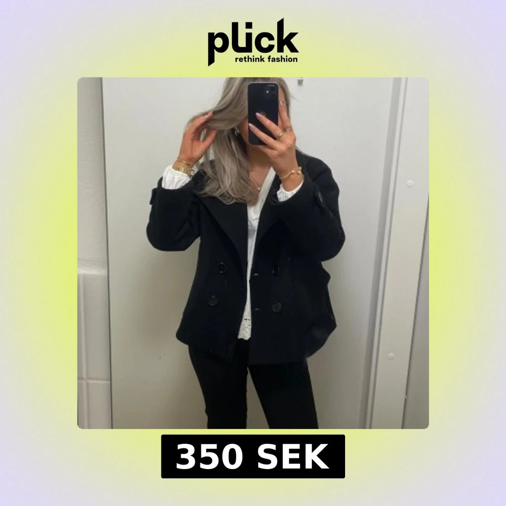 Snygg svart skepparkavaj med klassisk dubbelknäppning och bred krage. Jackan har en rak passform och är perfekt för dig som gillar en stilren look. Passar till både jeans och kostymbyxor. Materialet känns mjukt och värmande.