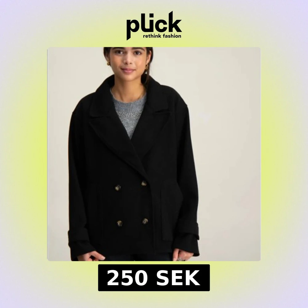Säljer en svart skepparkavaj med dubbelknäppning och bred krage. Jackan har stora fickor framtill och långa ärmar med dekorativa knappar vid mudden. Perfekt för dig som gillar en chill och klassisk stil med lite edge.