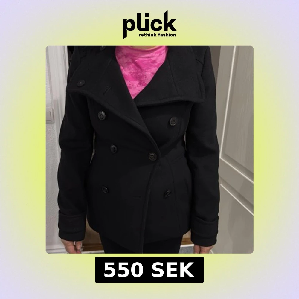 Stilren svart skepparkavaj från H&M i storlek 34 med dubbelknäppning och klassisk krage. Jackan har långa ärmar, figurnära passform och är tillverkad i ullblandning med slät fodrad insida. Perfekt för dig som gillar en tidlös look och vill ha något som funkar hela hösten och vintern. Jackan är aldrig använd.