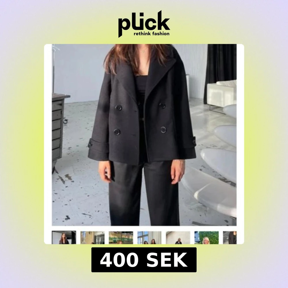 Stilren svart skepparkavaj med dubbelknäppning och bred krage. Jackan har en loose passform och långa ärmar med dekorativa knappar vid ärmslut. Perfekt för dig som gillar en klassisk men cool look.