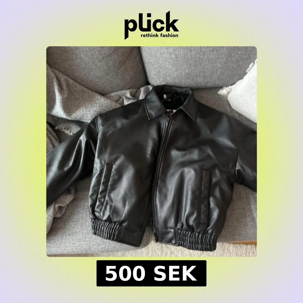 Snygg svart skinnjacka från BikBok med dragkedja och elastisk nederkant. Perfekt för en cool look. Jackan har en klassisk krage och två fickor framtill.