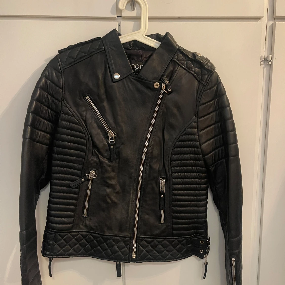 Riktigt snygg svart skinnjacka från Boda Skins med cool quiltad design på axlar och nederkant. Jackan har flera dragkedjor, bältesdetaljer och långärmade ärmar med ribbade partier. Perfekt för dig som vill ha en edgy och stilren look.