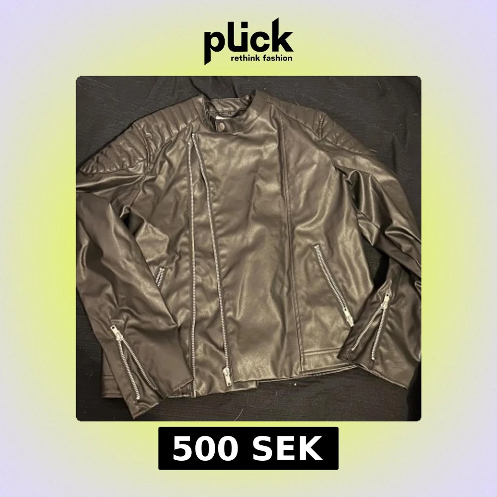 Snygg svart skinnjacka från H&M med coola detaljer som flera dragkedjor framtill och på ärmarna. Jackan har quiltade axlar och en stilren, rak passform. Perfekt för dig som vill ha en edgy look och gillar streetstyle.