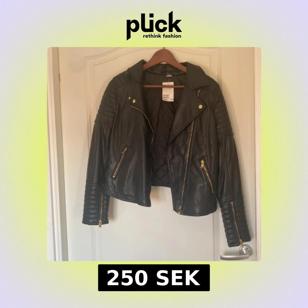 Säljer en svart skinnjacka från H&M i storlek 40. Jackan har coola quiltade detaljer på axlar och ärmar, guldiga dragkedjor och klassisk bikerkrage. Snygg croppad passform och markerade sömmar ger en edgy look. Perfekt för dig som vill sticka ut lite extra.