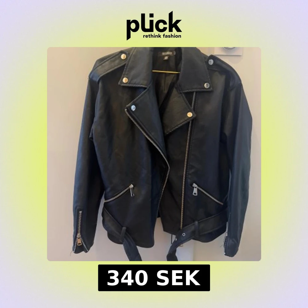 Snygg svart skinnjacka från Missguided. Jackan har silvriga dragkedjor o knappar, bälte, axelklaffar och bred krage. Jackan är oversized. Storlek 36.