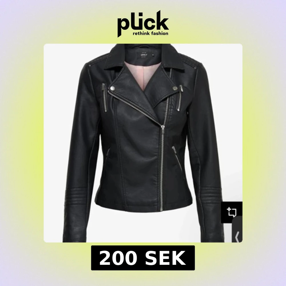 Säljer en svart skinnjacka från ONLY med klassisk bikerstil. Jackan har sned dragkedja, dekorativa dragkedjor på bröst och sidor samt detaljerade sömmar på axlar och ärmar. Perfekt för en cool och tidlös look.