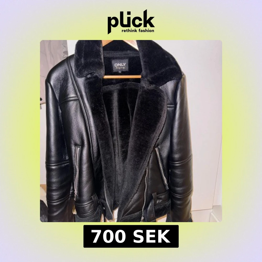 Snygg svart skinnjacka från ONLY med mjukt foder och krage i pälsimitation. Jackan har dragkedja och stilrena detaljer. Perfekt för kyligare dagar.