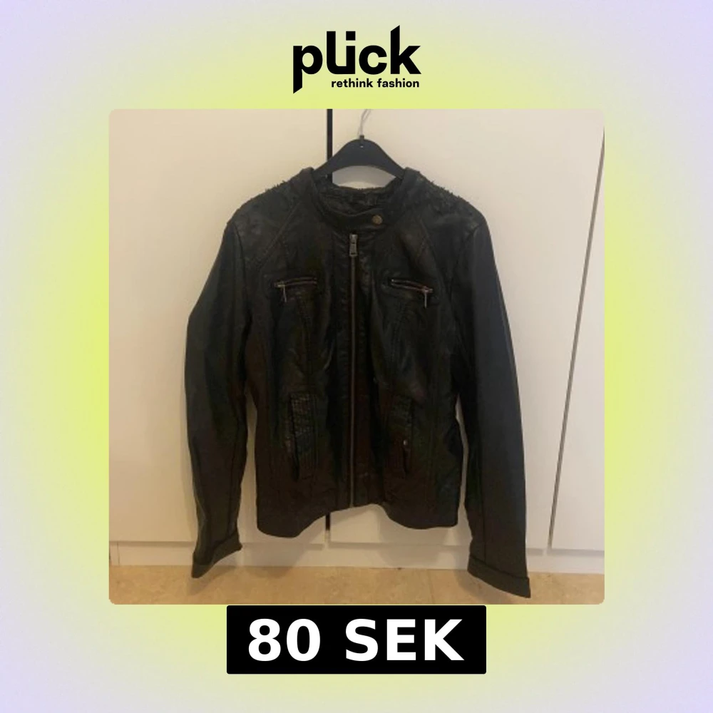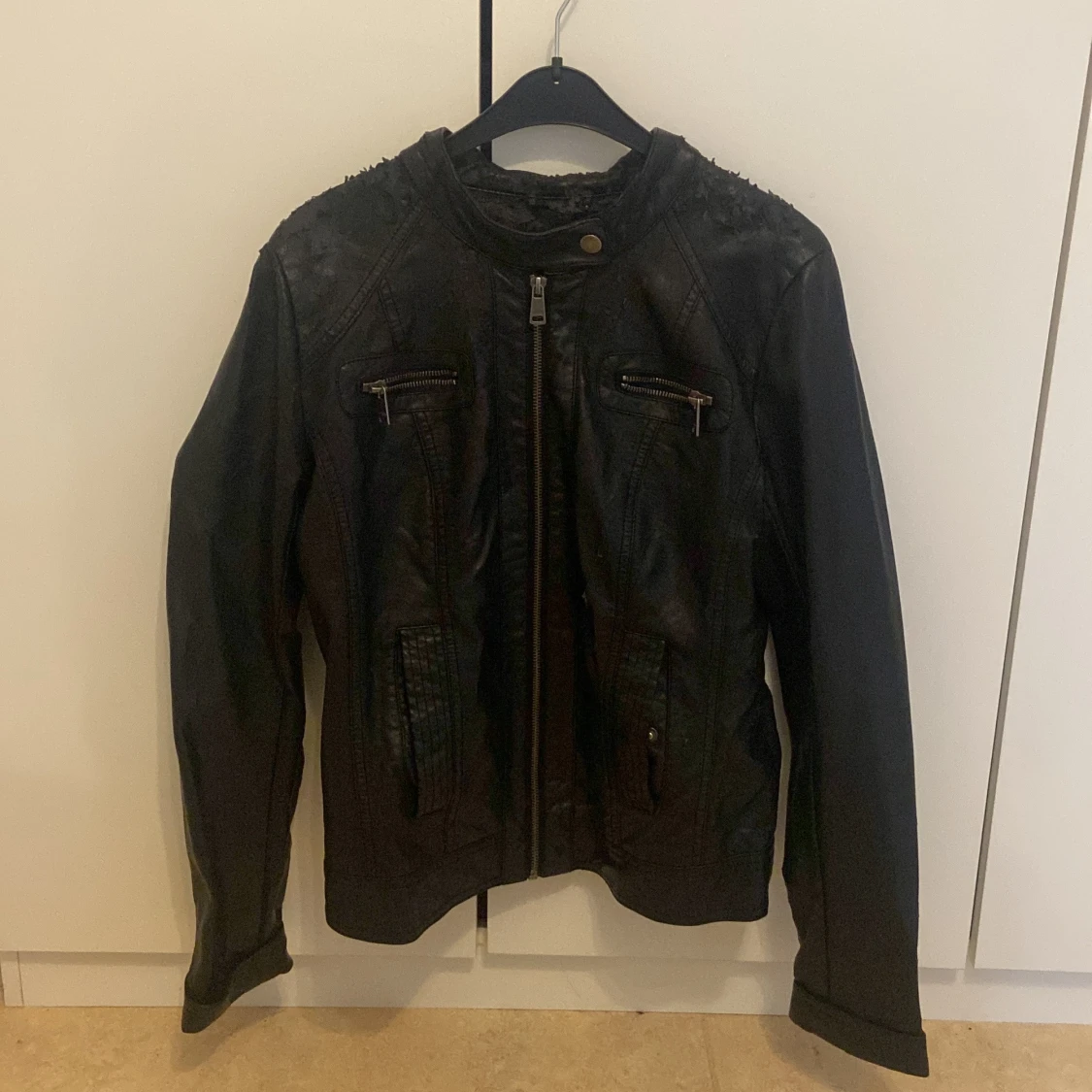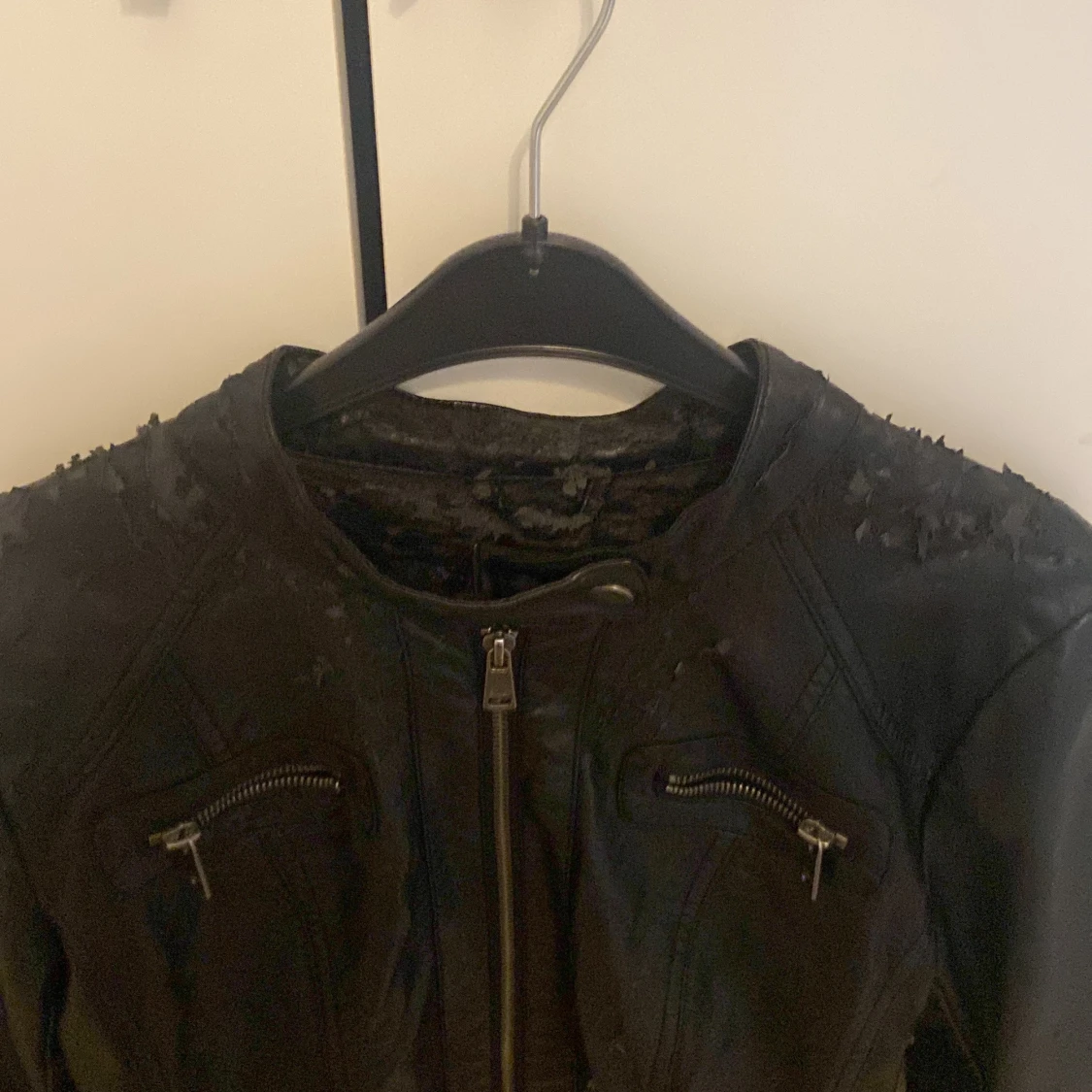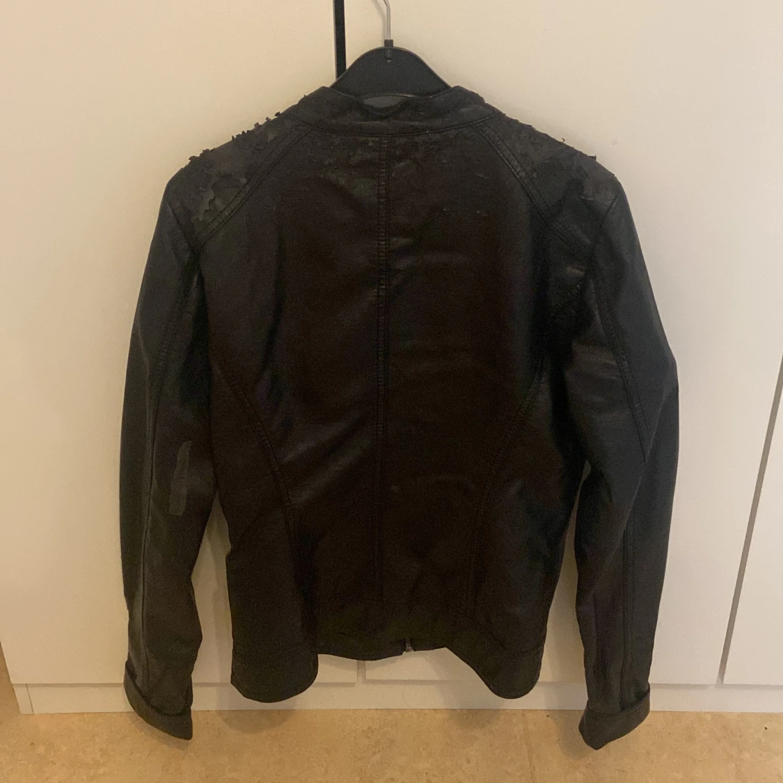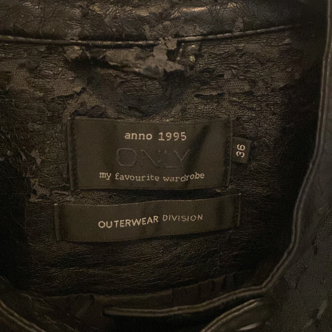 Svart skinnjacka från ONLY. Storlek 36. Defekt på flertal ställen (kolla bilderna).