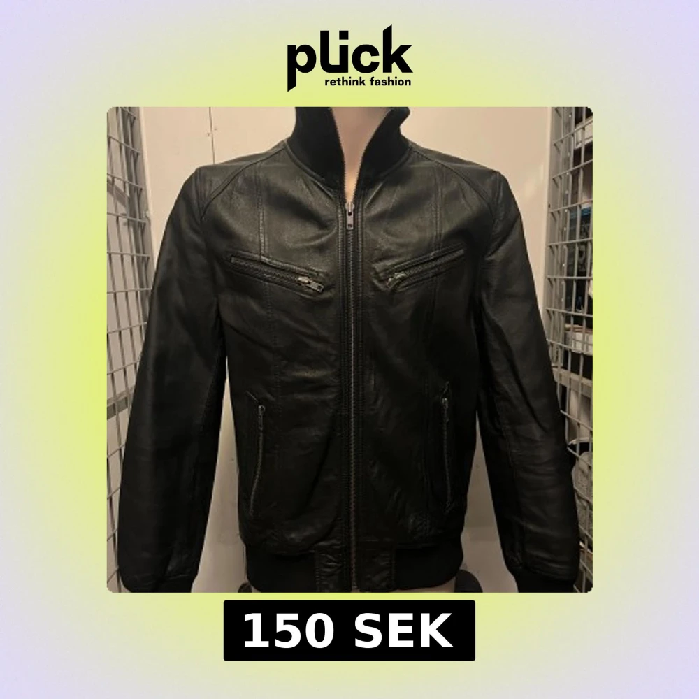 Snygg svart skinnjacka från Poco Loco med dragkedja framtill och två bröstfickor med dragkedjor. Jackan har en klassisk look med ribbade muddar vid ärmslut och nederkant. Perfekt för en cool och stilren outfit.