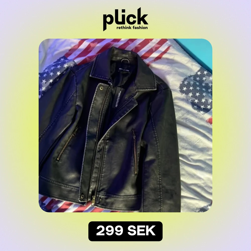 Säljer en snygg svart skinnjacka från PrettyLittleThing. Jackan har en cool bikerstil med dragkedja och knappar. Perfekt för höst och vår, och den funkar lika bra till fest som till vardags. Den är i nyskick.