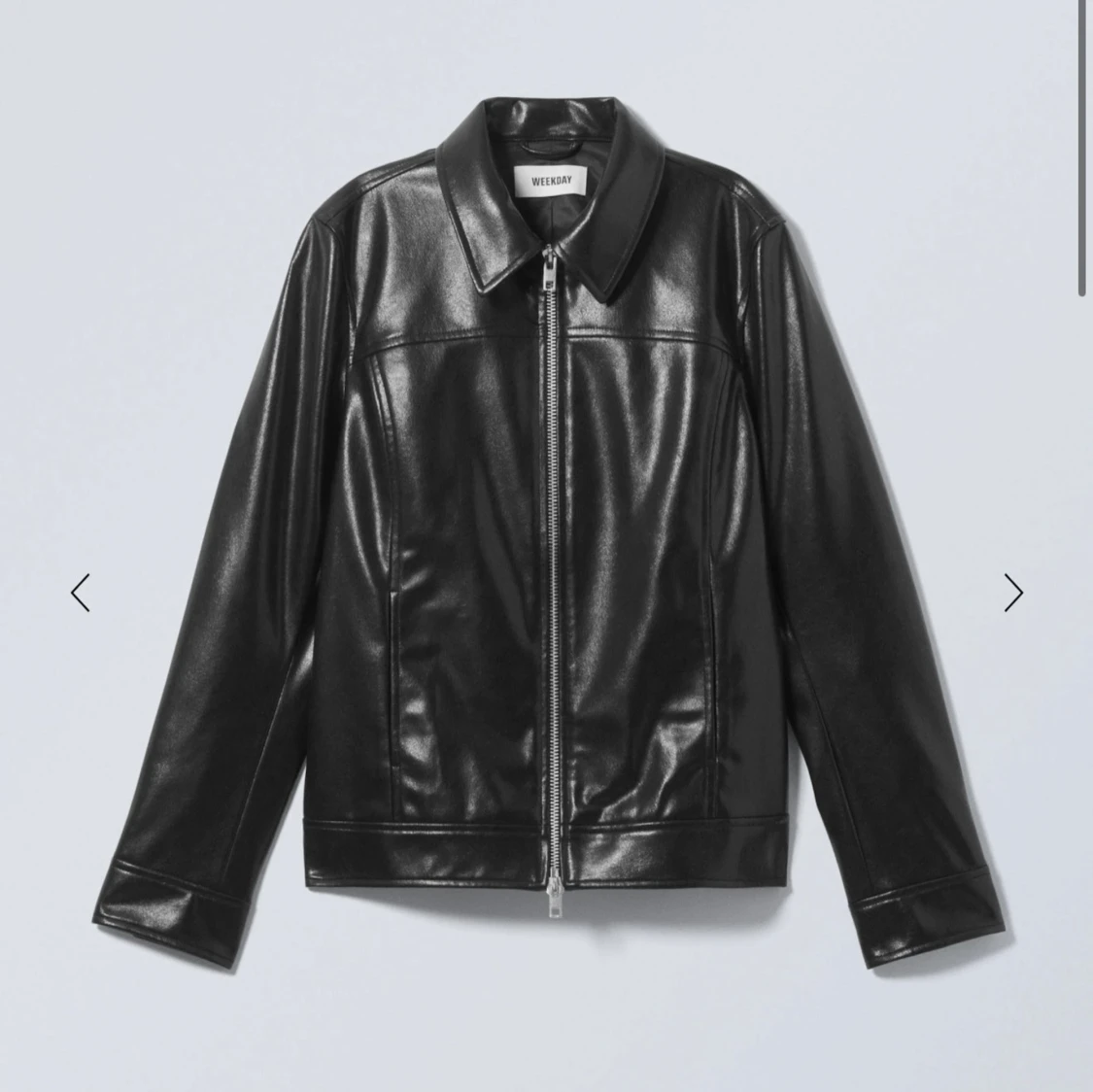 Snygg svart skinnjacka från Weekday med klassisk krage och raka linjer. Jackan har dragkedja framtill och två sidfickor. Perfekt för dig som vill ha en stilren och tidlös look.
