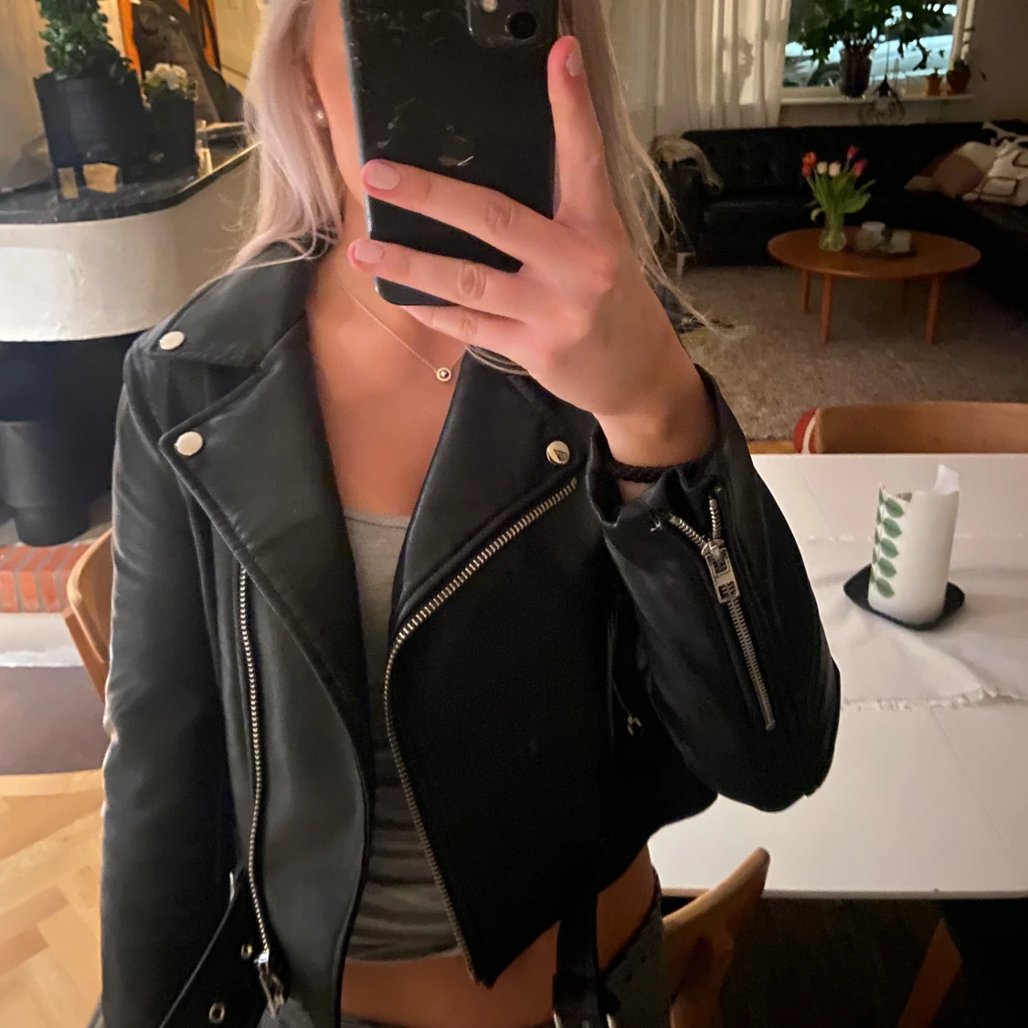 Svart skinnjacka zara.