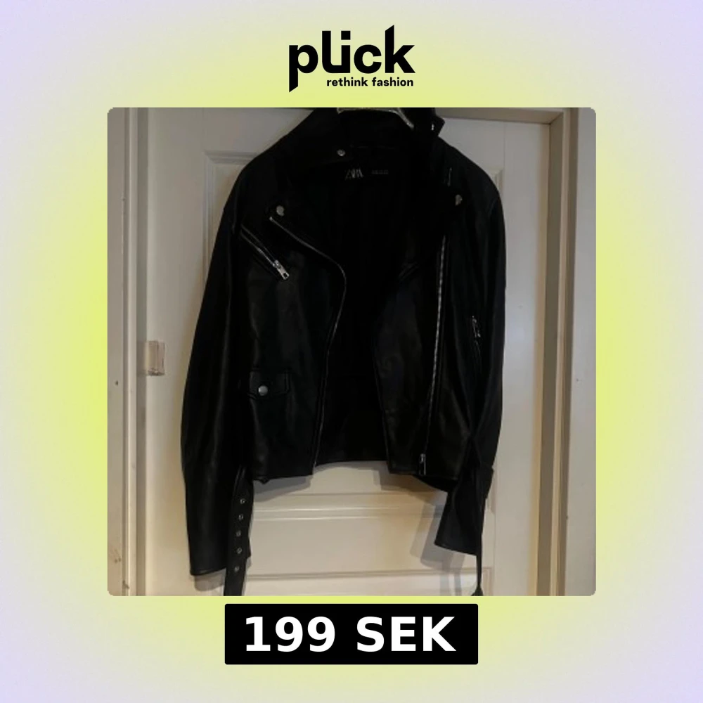 Snygg svart skinnjacka från Zara med dragkedjor och knappar. Jackan har en klassisk bikerstil med flera fickor och detaljer som ger en cool look. Perfekt för att ge din outfit en edgy touch. Mindre i storlek
