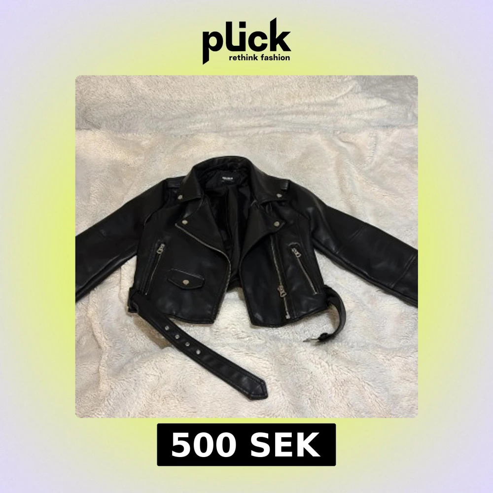 Snygg svart skinnjacka från Pull&Bear med dragkedjor och bälte. Perfekt för en cool look med sina detaljerade fickor och klassiska design. Passar utmärkt till både vardag och speciella tillfällen. Få använda gånger. Stl 38