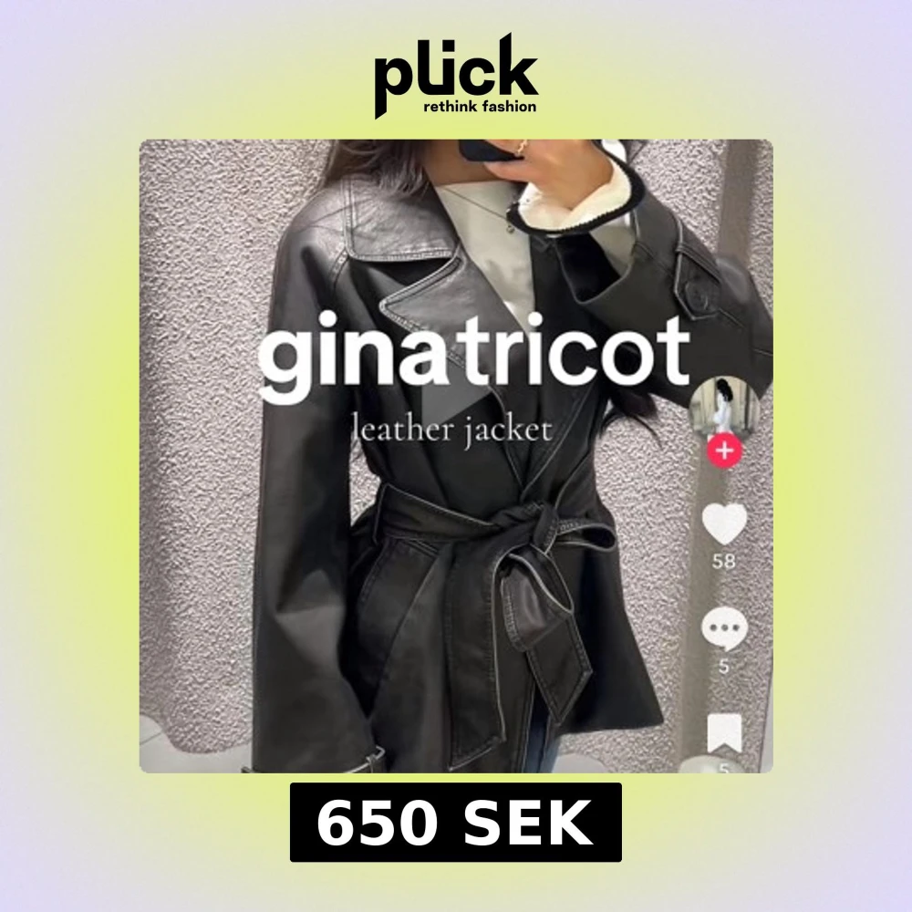 Snygg svart skinnjacka från Gina Tricot med markerade sömmar och bälte i midjan. Jackan har stora slag, långa ärmar med knapprade detaljer och en stilren, lite oversized passform. Perfekt för dig som vill ha en edgy och trendig look. DEN ÄR HELT NY har aldrig använt dä jag fick den i present och hann ej returnera.